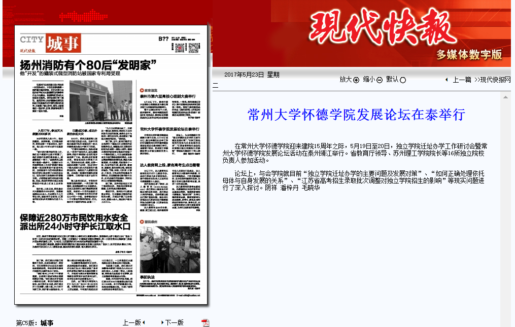 在常州大学怀德学院迎来建院15周年之际,5月19日至20日,独立学院迁址办学工作研讨会暨常州大学怀德学院发展论坛活动在泰州靖江举行。省教育厅领导、苏州理工学院院长等16所独立院校负责人参加活动。