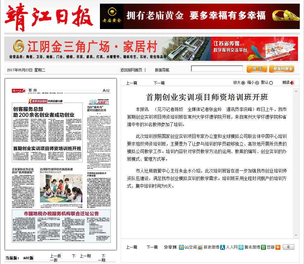 昨日上午,我市首期创业实训项目师资培训班在常州大学怀德学院开班,来自常州大学怀德学院和省靖中专的30名教师参加了培训。
