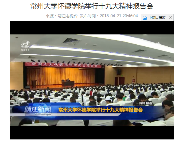影响靖江:常州大学怀德学院举行党的十九大精神报告会