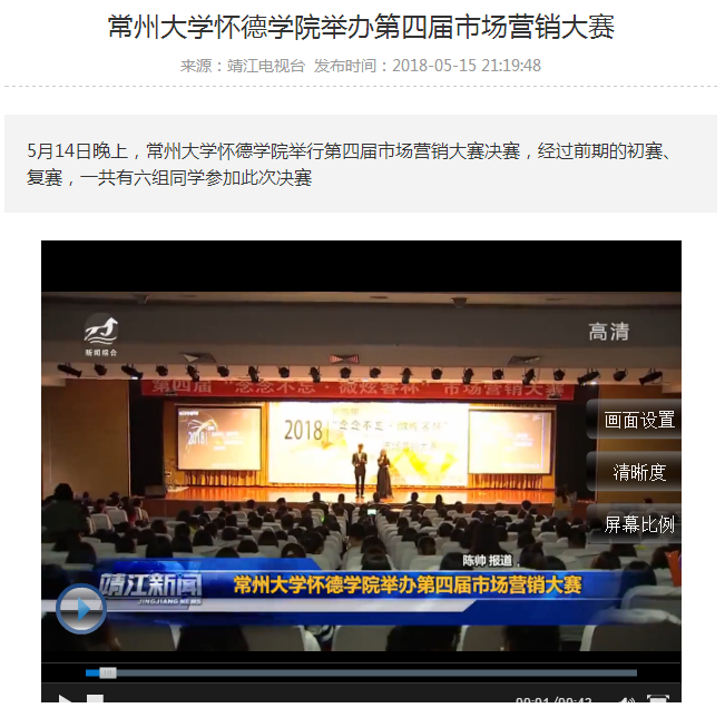 5月14日晚上,常州大学怀德学院举行第四届市场营销大赛决赛,经过前期的初赛、复赛,一共有六组同学参加此次决赛,决赛现场,参赛选手向现场评委讲述了各自的营销方案和营销成果,并接受了评委的现场答辩。通过这次活动,学生们从课堂走向了生活,从理论走向了实践。