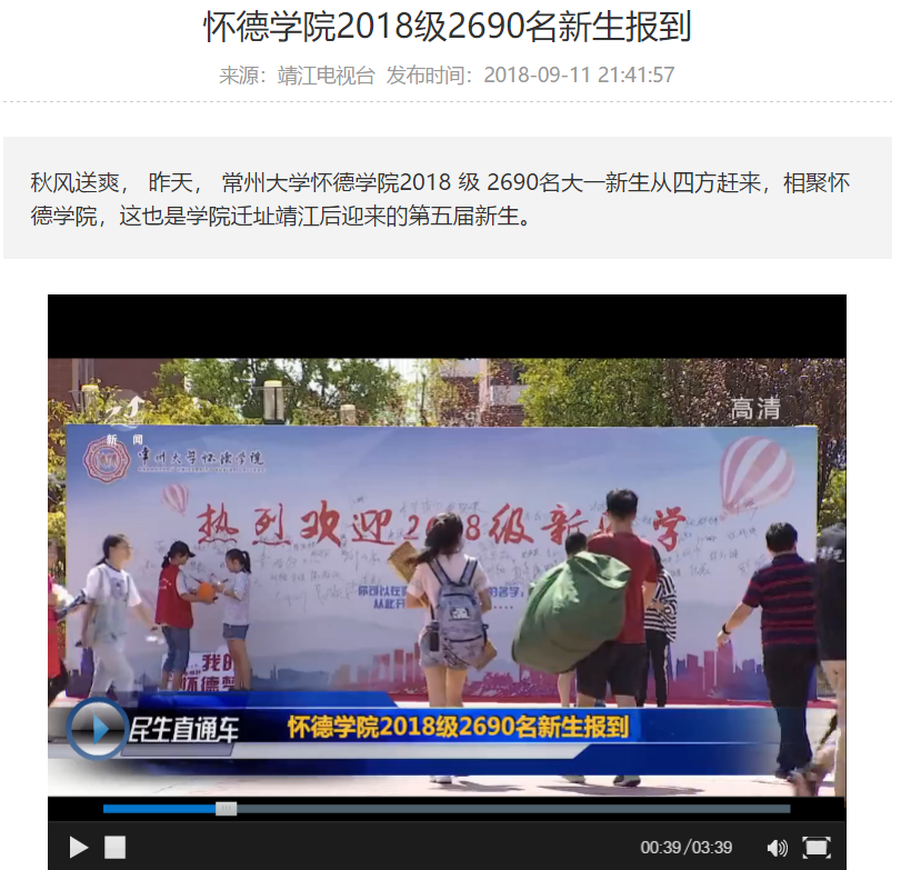秋风送爽, 昨天, 常州大学怀德学院2018 级 2690名大一新生从四方赶来,相聚怀德学院,这也是学院迁址靖江后迎来的第五届新生。