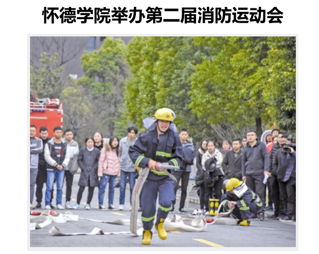 日前,常州大学怀德学院举办第二届消防运动会。泰州各市区高校及中小学安保负责人集中参与。本届消防运动会以“全民参与 防治火灾”为主题,设置消防综合技能、消防基础技能、水带出水三项竞赛内容,让消防常识进校园,提高校园消防安全管理水平,增强师生自防自救能力。图为运动会现场。怀德学院供图