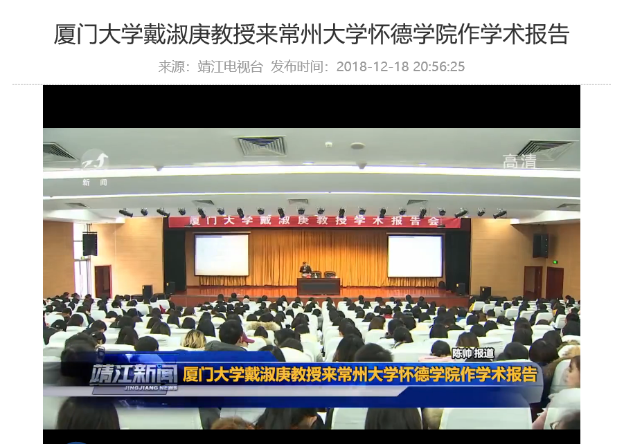 影响靖江:厦门大学戴淑庚教授来常州大学怀德学院作学术报告