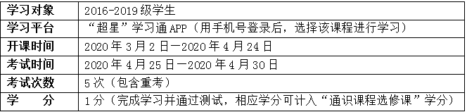 请所有同学认真学习并参加考试。学习过程中有任何疑问,可与信息中心马老师联系(QQ:54740980),超星学习通APP使用指南详见附件。