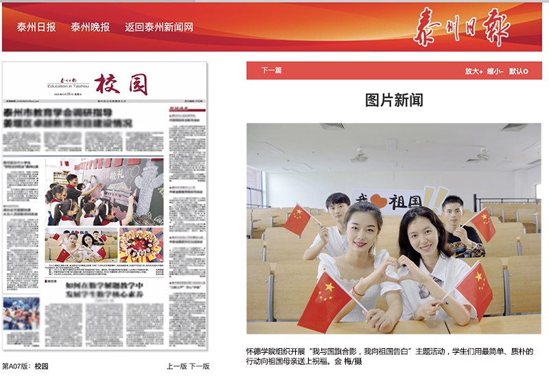 为大力唱响礼赞新中国、奋进新时代的青春主旋律,引导广大师生共抒爱国情怀、共话祖国新貌,在国庆来临之际,怀德学院组织开展了“我与国旗合影,我向祖国告白”主题活动。