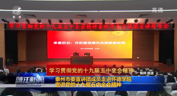 影响靖江:泰州市委宣讲团成员朱忠孝走进怀德学院 宣讲党的十九届五中全会精神