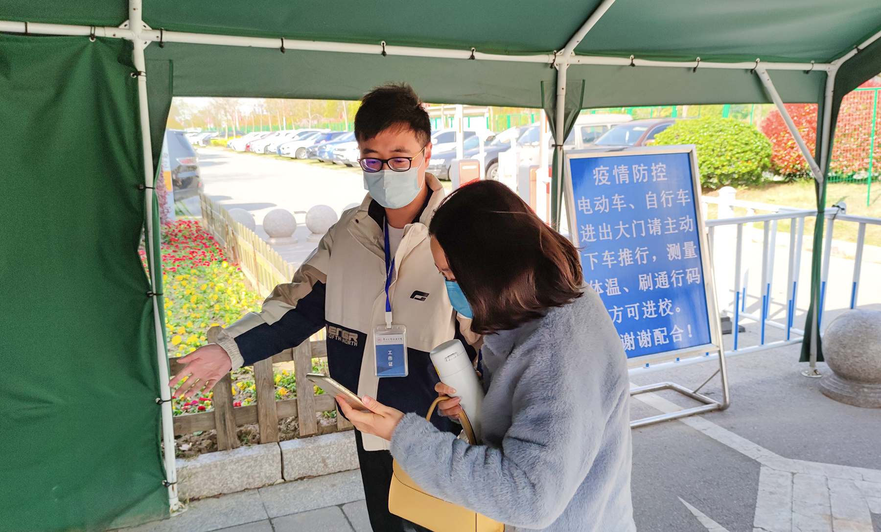 “我的工作是巡逻学院北门门岗,这一块我盯的特别紧,有几次校外人员想入校都被我严厉制止了,疫情期间任何环节的疏漏都可能造成新的风险。”在学校门岗完成一天执岗服务的孔俊涛老师说。
