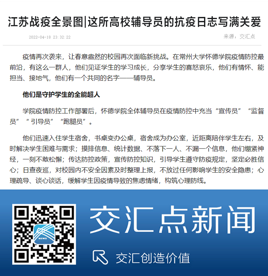 疫情再次袭来,让春意盎然的校园再次面临新挑战。在常州大学怀德学院疫情防控最前沿,有这么一群人,他们见证学生的学习成长,分享学生的喜怒哀乐,他们有情怀、能担当、接地气,他们有一个共同的名字——辅导员。