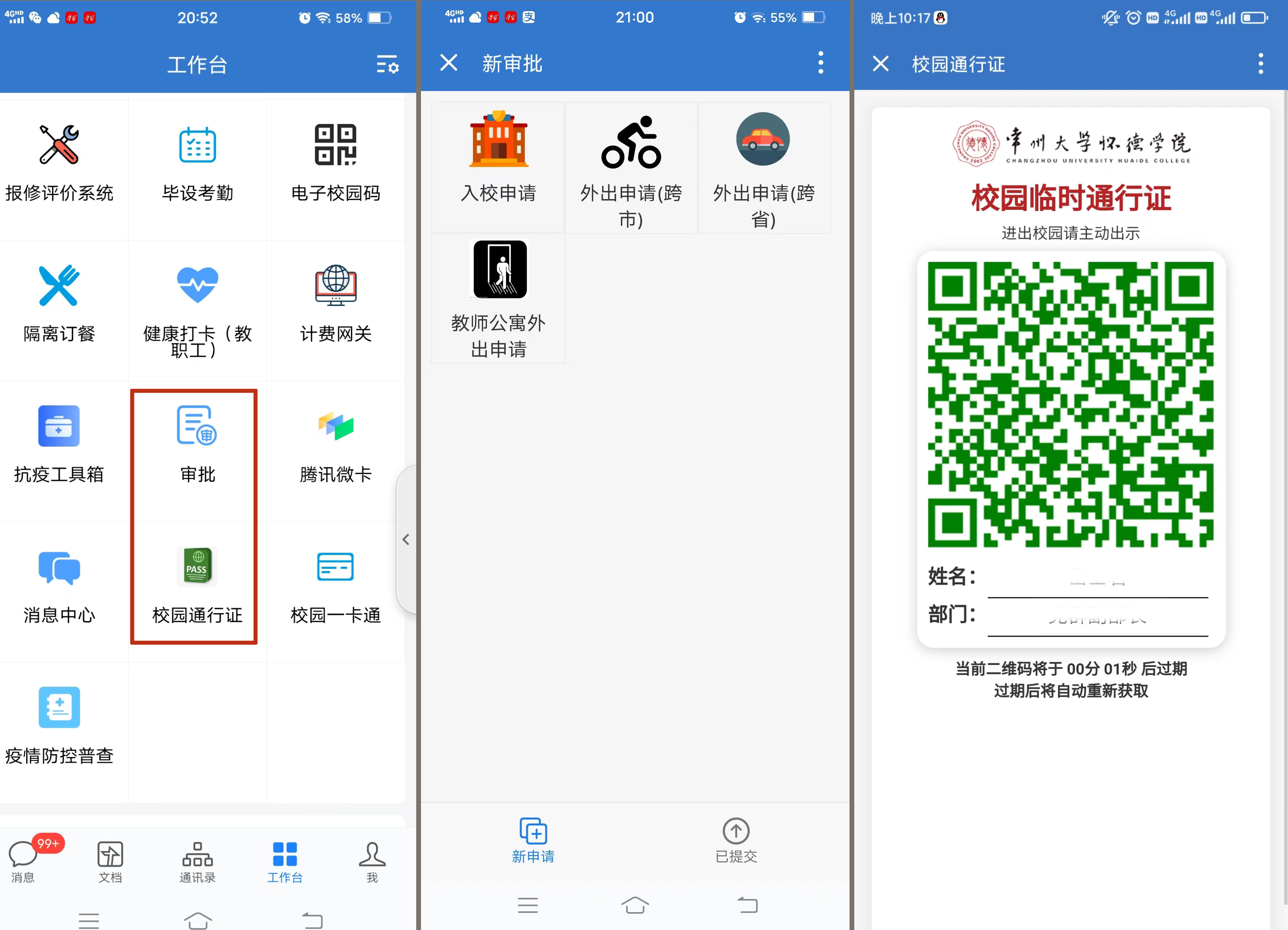 技术赋能打造“数字大门”。怀德学院一年前为助力学生返校、迎新工作上线了“校园通行证”审批系统。根据疫情防控最新要求,该系统增设了跨省、跨市出行及教职工进出公寓审批模块,用户范围覆盖教师、学生、后勤职工、临时访客等4类群体,推行“不见面审批”,打造学校智能化“数字大门”。