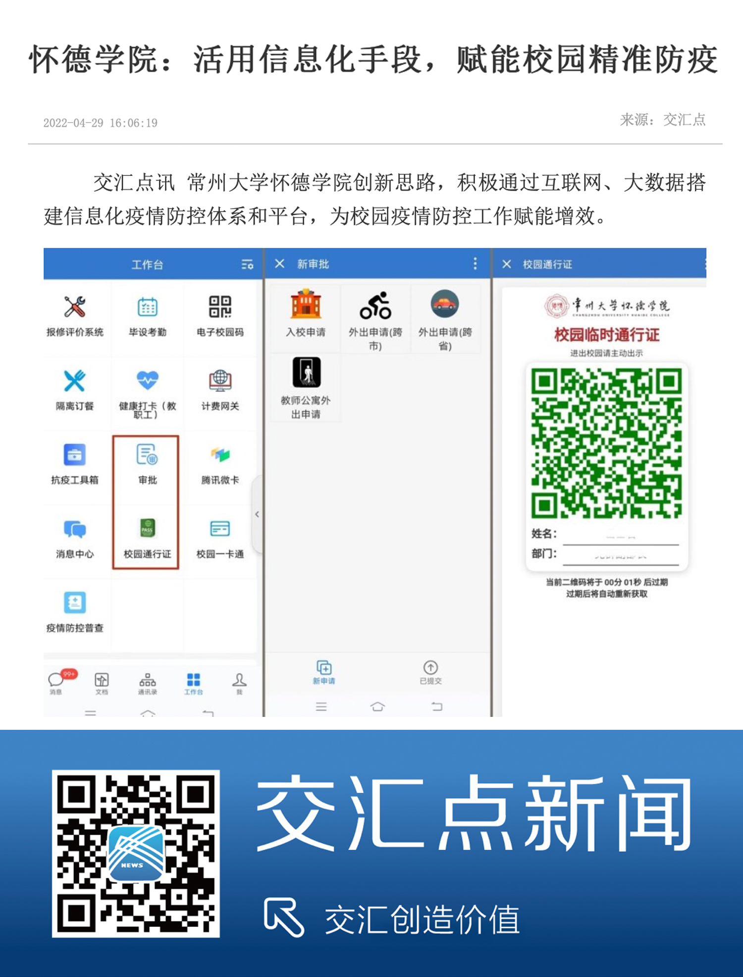 交汇点讯 常州大学怀德学院创新思路,积极通过互联网、大数据搭建信息化疫情防控体系和平台,为校园疫情防控工作赋能增效。
