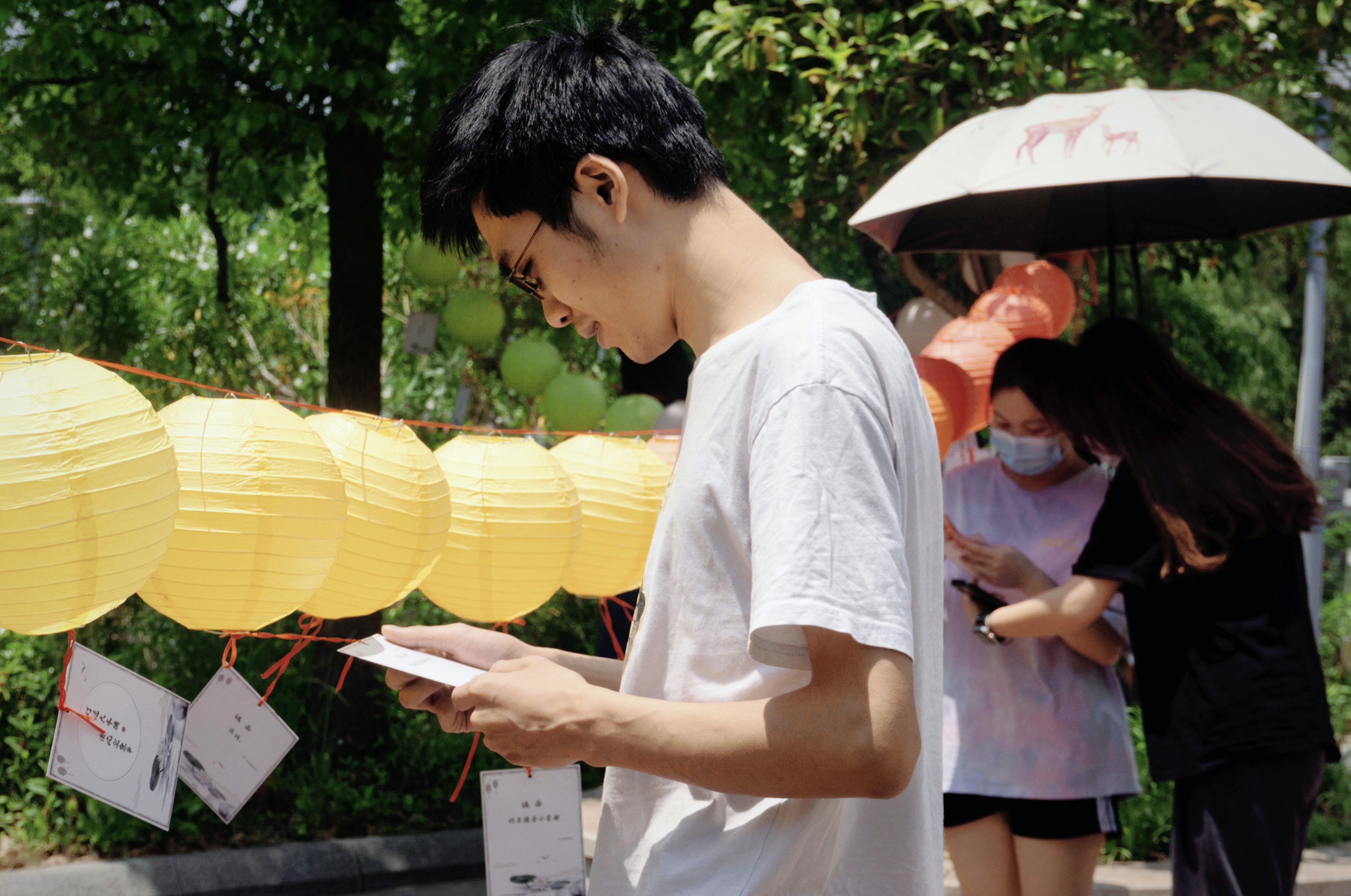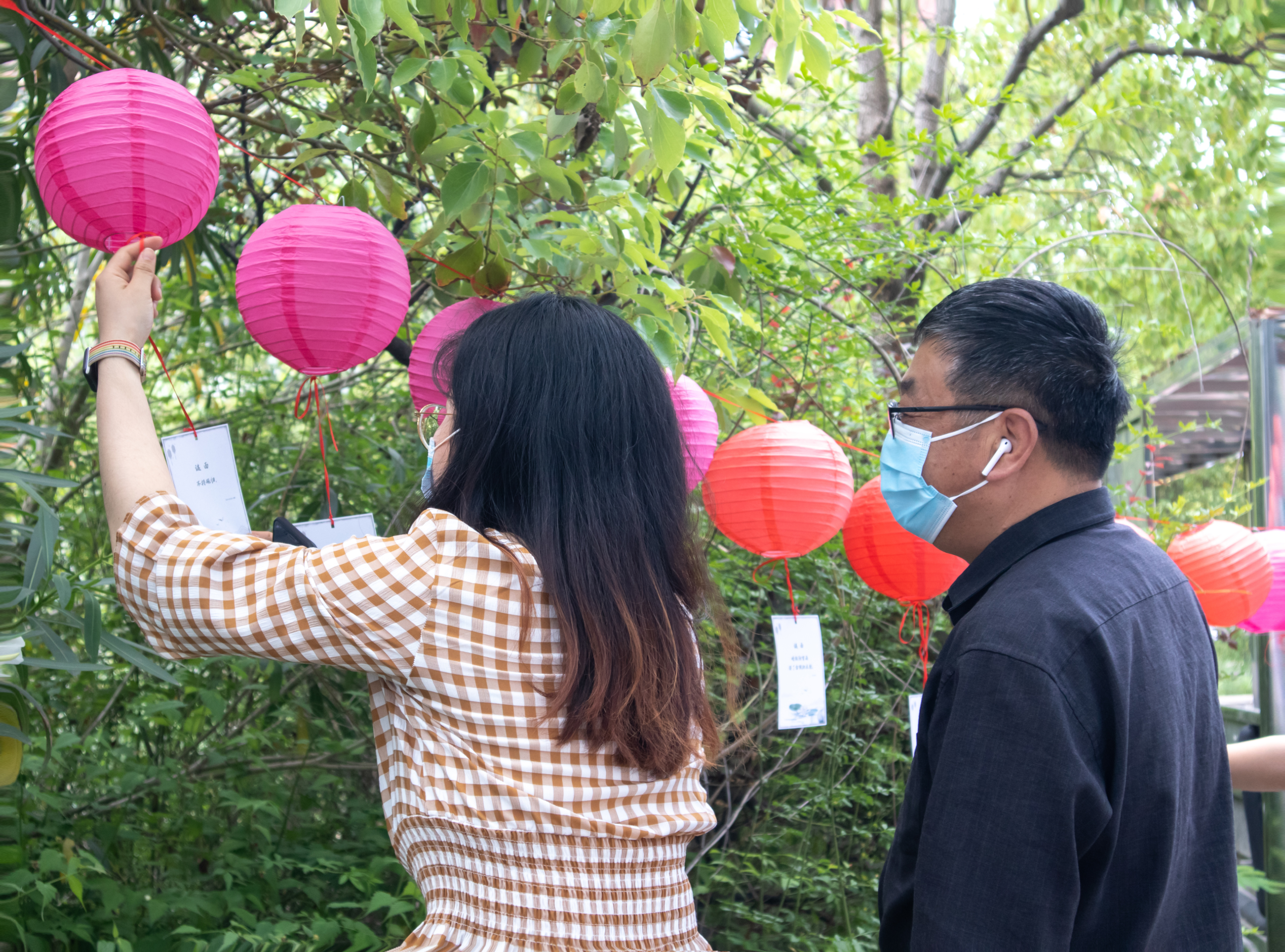 灯谜大家猜 花语颂廉洁。“我猜出来了!‘什么无十,怎么无心’这一定是‘作’字,‘大雪飘飘,二小西去’这是什么字呢?”在一食堂外,怀德学院“520我爱廉”猜灯谜活动正在进行。这个520“廉味”十足,五彩灯笼下悬挂着各色带有廉洁谜语的谜笺,兑奖区的文竹、君子兰等廉政绿植也为现场带来绿意清风,现场被装点一新。