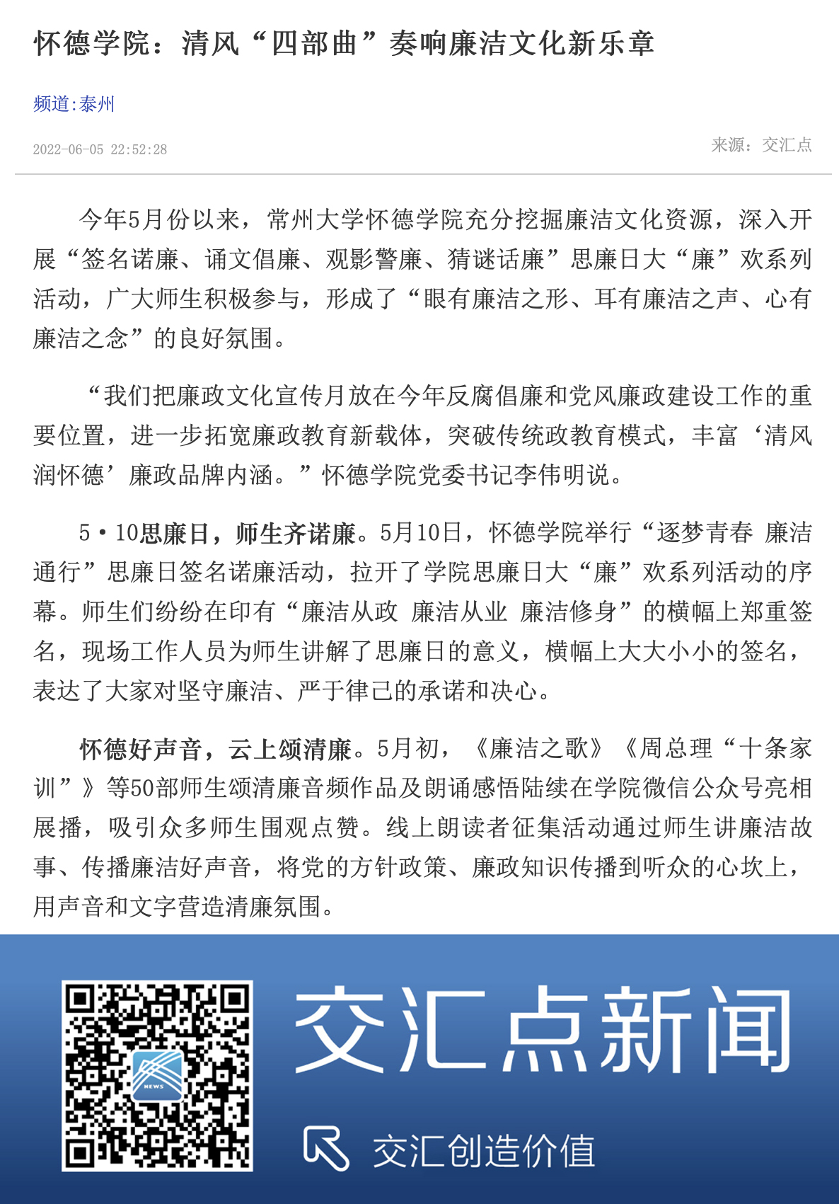 【交汇点新闻】怀德学院清风“四部曲”奏响廉洁文化新乐章