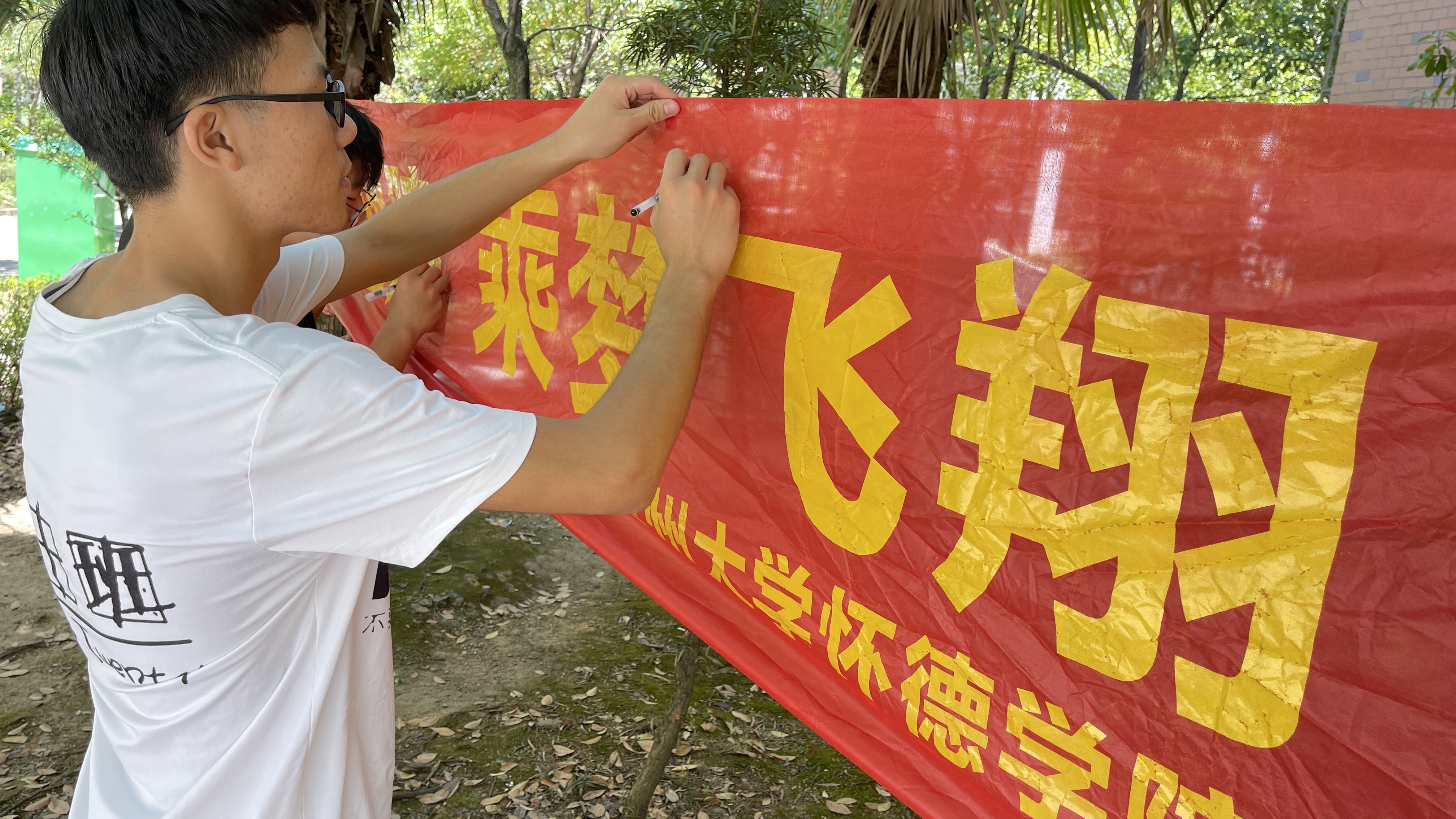 队员在当地开展资助宣传标语签名活动
