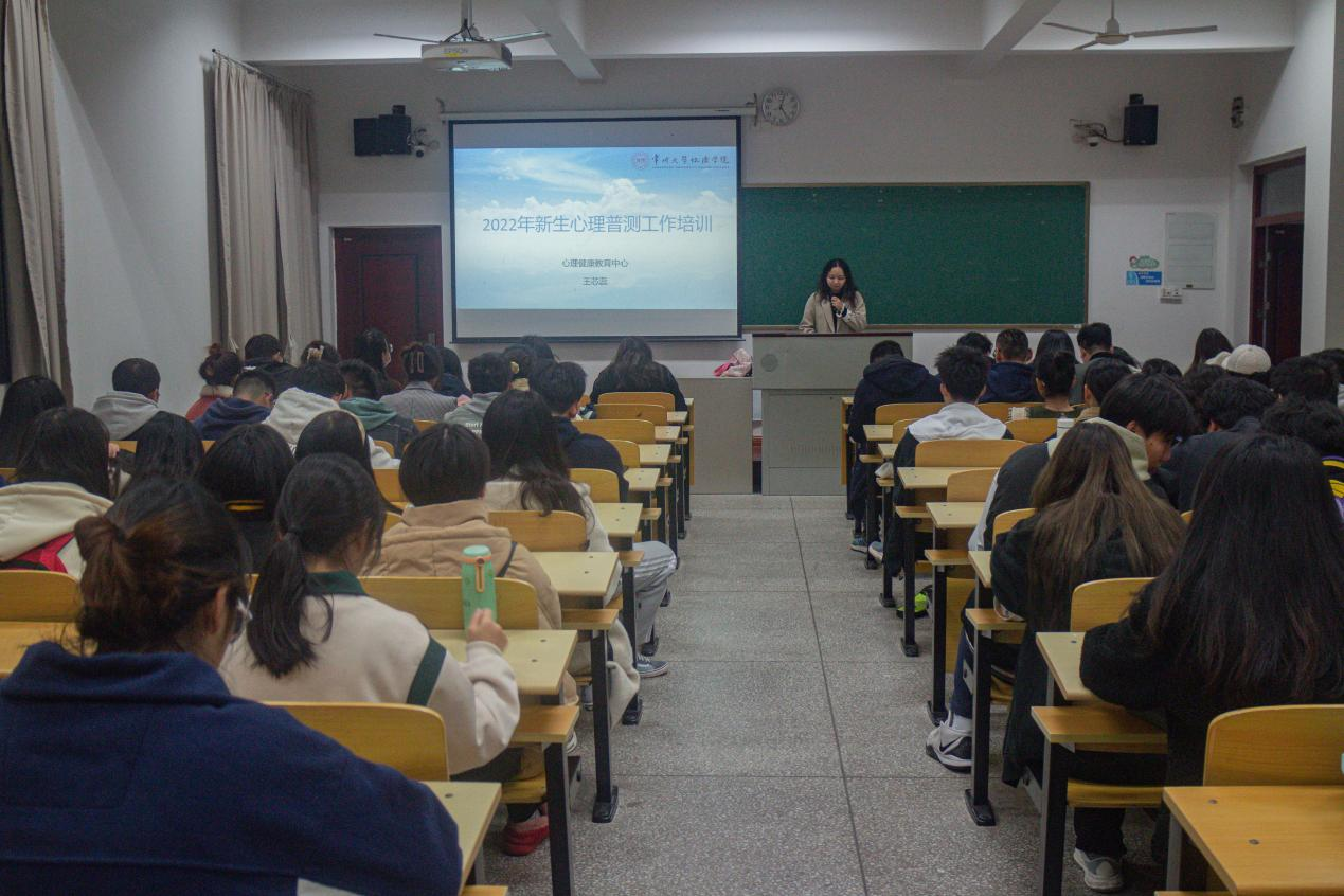 为提升我院新生心理普测的科学性与实效性,推进建立心理健康档案工作,从源头上加强心理危机预防与干预。11月14日晚,心理健康教育中心王芯蕊老师面向新生辅导员及小班展开心理普测工作培训。