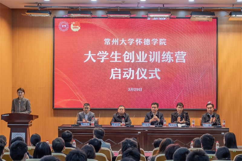 3月29日下午,第二届常州大学怀德学院大学生创新训练营启动仪式在图书馆报告厅顺利举行。靖江市人力资源和社会保障局局长王海清,院党委副书记、副院长刘国仕,靖江市人力资源和社会保障局一级主任科员朱建忠,江苏省创业服务协会常务副会长,“创响江苏”创业指导专家团首席专家王伟,江苏歌德创业服务(集团)有限公司副总裁,歌德电商学院院长钱小平共同出席本次活动。