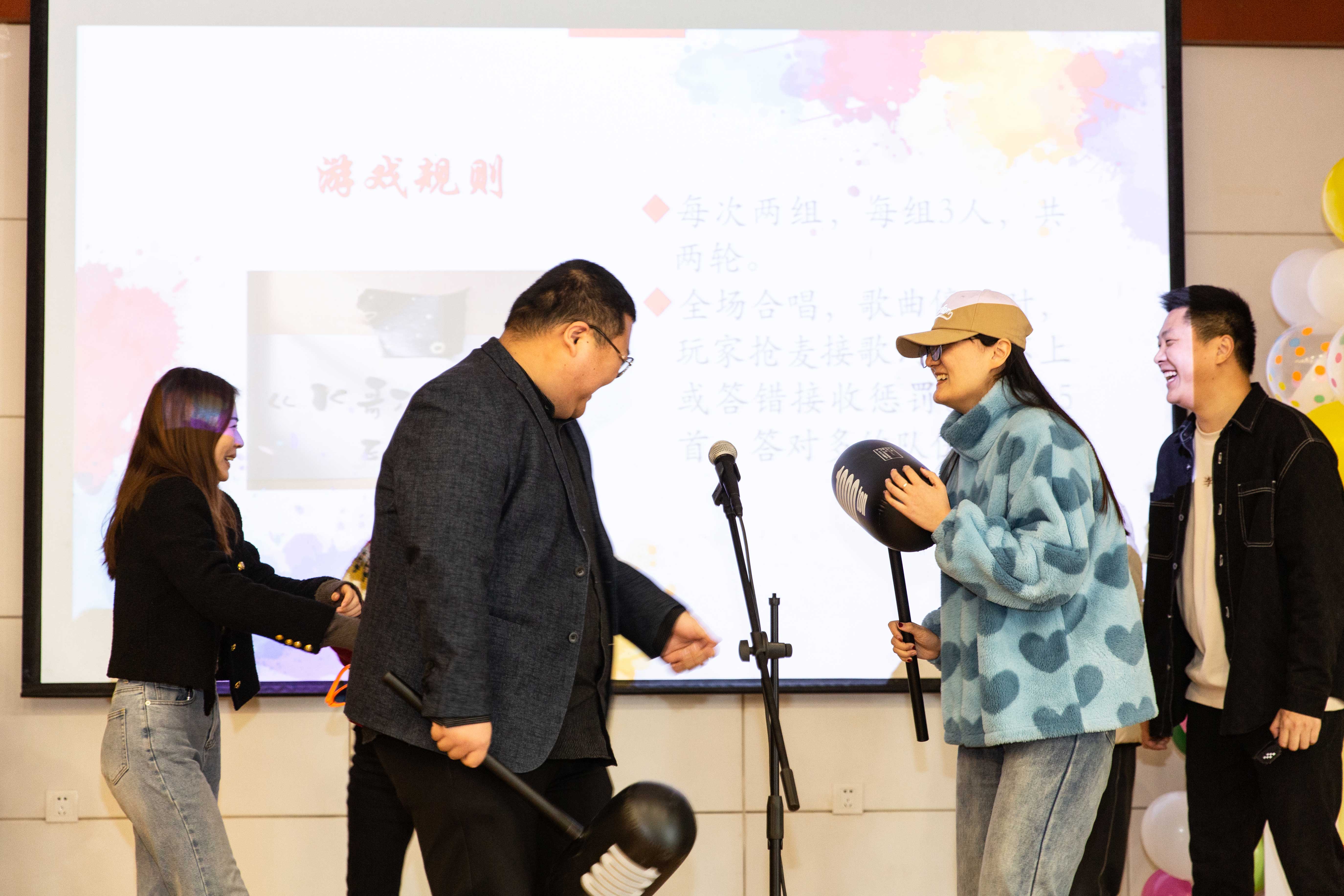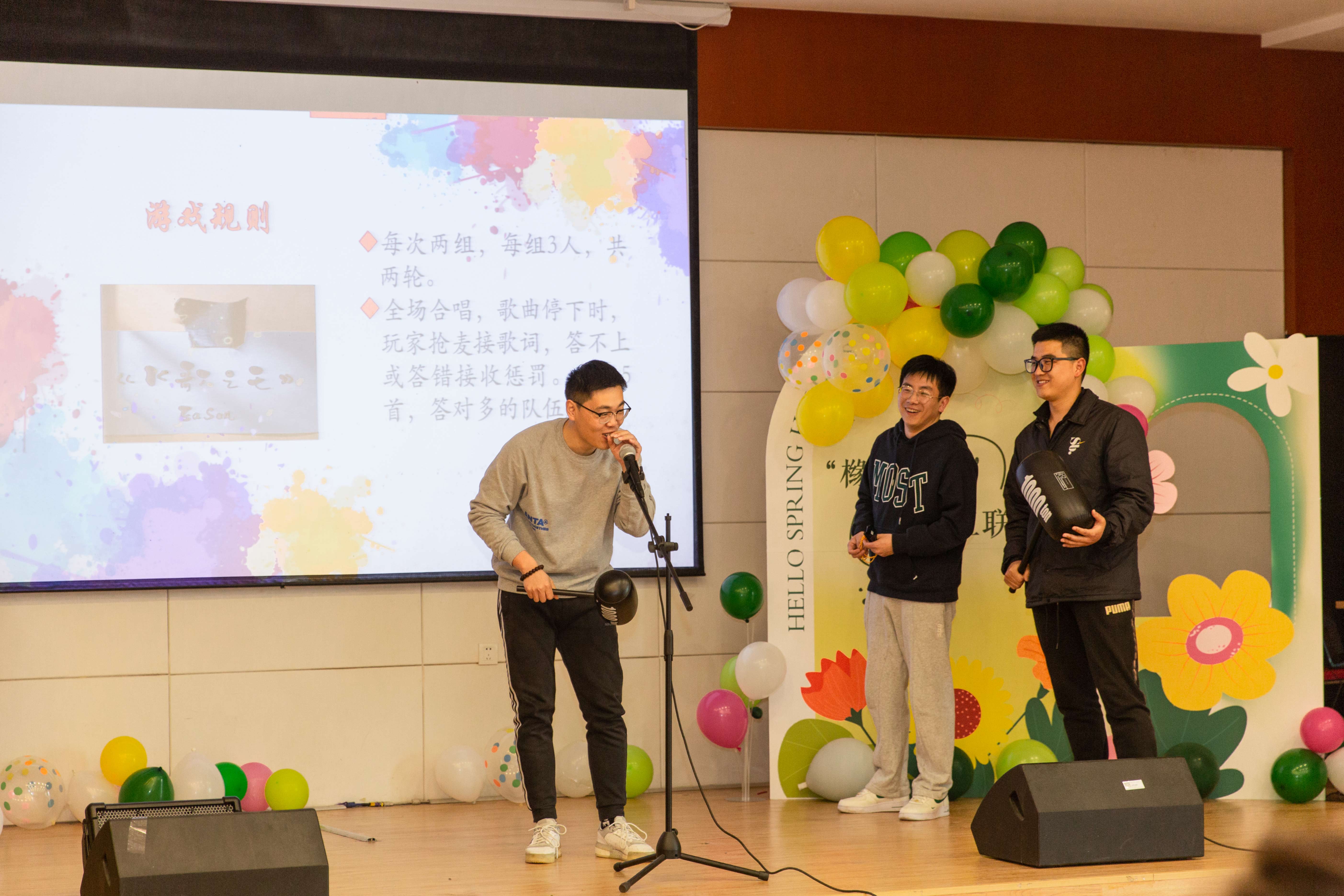 活动伊始,蒋美萍在热情洋溢的致辞中,希望青年老师们在这个阳光和煦、草长莺飞的春日里卸下工作的压力,放松身心,积极交流,祝愿老师们在活动中建立友谊、收获幸福。活动以别样的破冰方式拉开帷幕,青年教职工通过自我介绍、趣味答题等环节展开了沟通和了解。接着,分组搭档完成了“齐心协力”、“K歌之王”等挑战,大家在欢声笑语中畅谈言欢,整体氛围温馨而活泼。