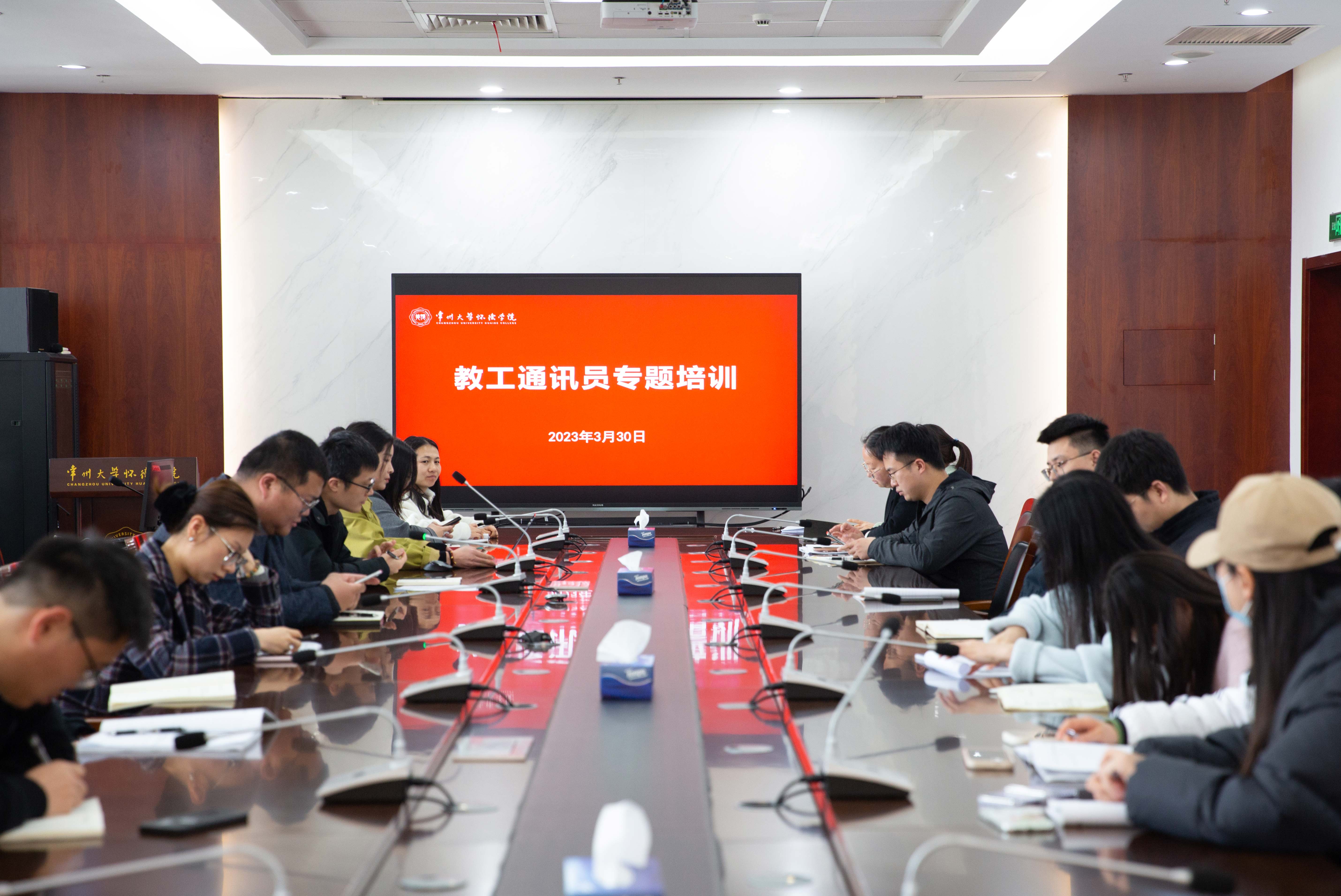 3月30日下午,我院在怀德楼第二会议室召开2023年第一次教工通讯员培训,党群办公室主任岳士君、党群办公室宣传工作人员和学院全体教工通讯员老师参加,会议由岳士君主持。