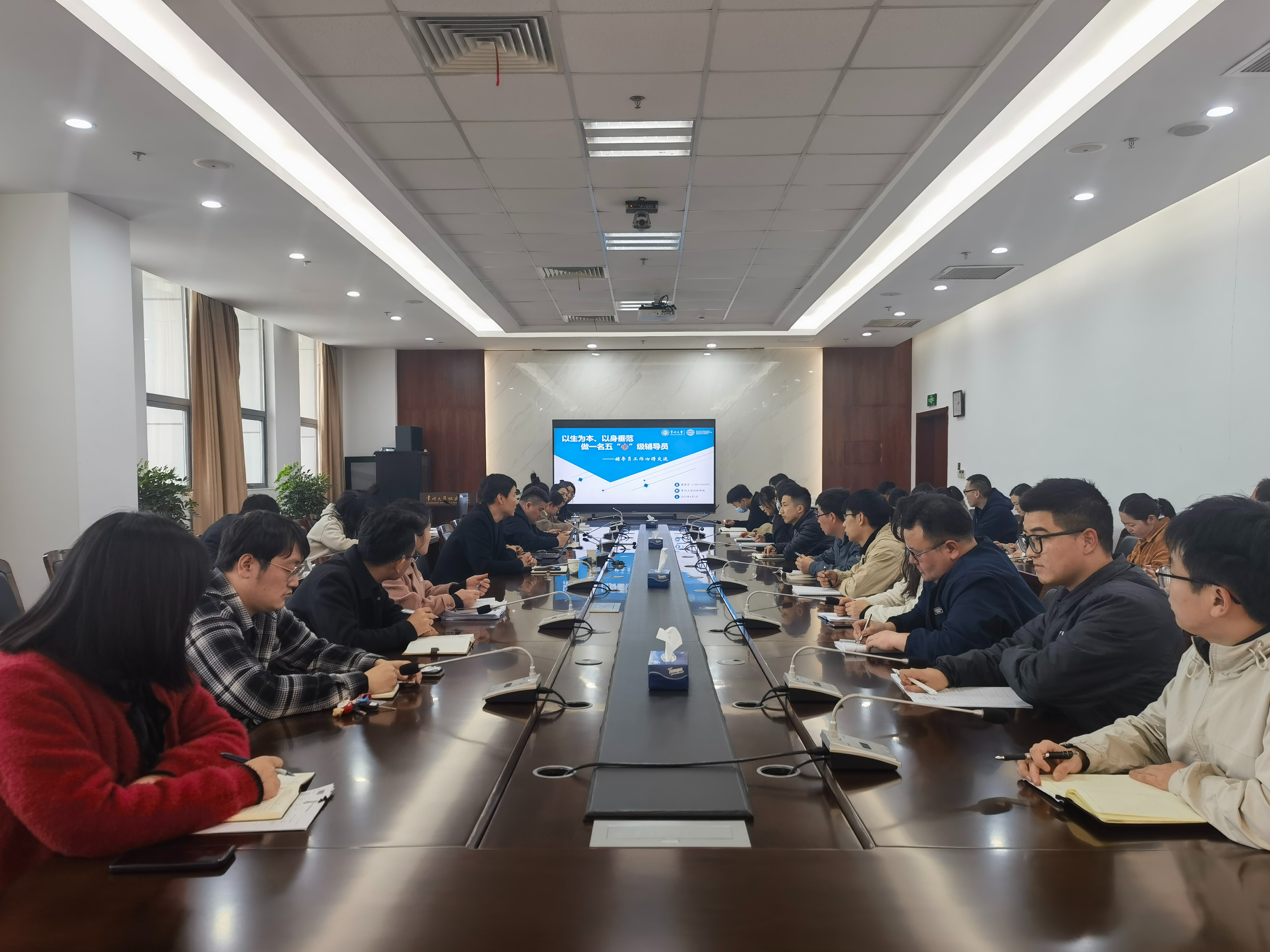 蔡震宇提出要充分认识辅导员的角色定位——把陪伴、见证学生成人成才融入到学校学院事业发展中,并结合自身十八年的学生工作经验,分享了丰富的工作实例,从“德、能、勤、技、廉”五方面着手,详细阐述了如何做一名“显心意,让学生信赖;尽心力,让学生认同;活心态,让学生亲近;花心思,让学生服气;有心气,让学生尊敬”的五“心”级辅导员。蔡震宇生动透彻的讲授道出了辅导员们的心声,现场气氛轻松活络,大家深入领会、收获满满。