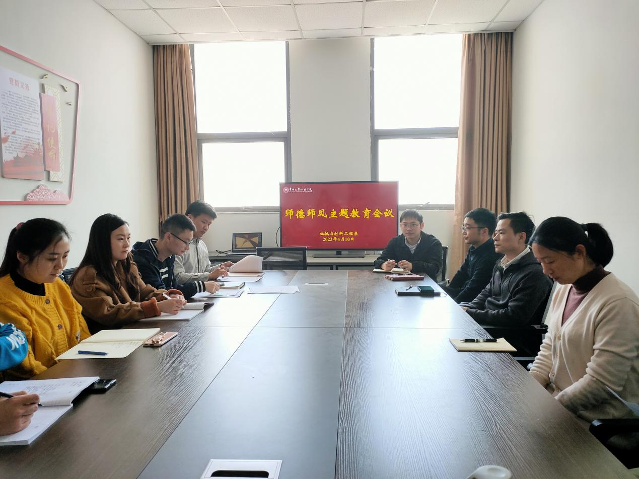 为加强机械与材料工程系教师队伍建设,引导全系教师恪守职业道德,进一步加强师德师风教育,4月10日中午,机械与材料工程系于怀德楼1323会议室召开师德师风主题教育会议。会议由机械与材料工程系党总支书记朱骥洪主持,机械与材料工程系全体教师参加会议。