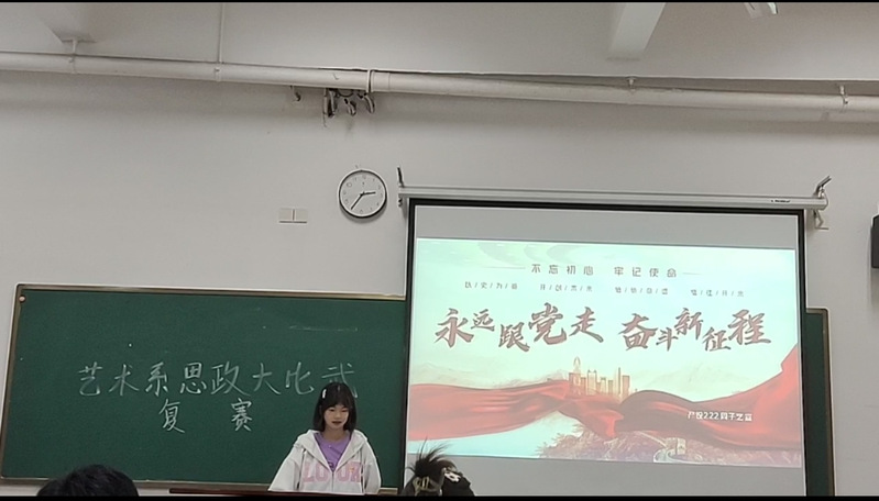 为强化思政技能,深入学习贯彻党的二十大精神,团结引领学院团员青年坚定信念跟党走,勇做走在新时代新征程奋进者,艺术系于4月2日在B楼组织团干部思政技能大比武初赛,于9日在B楼组织复赛。