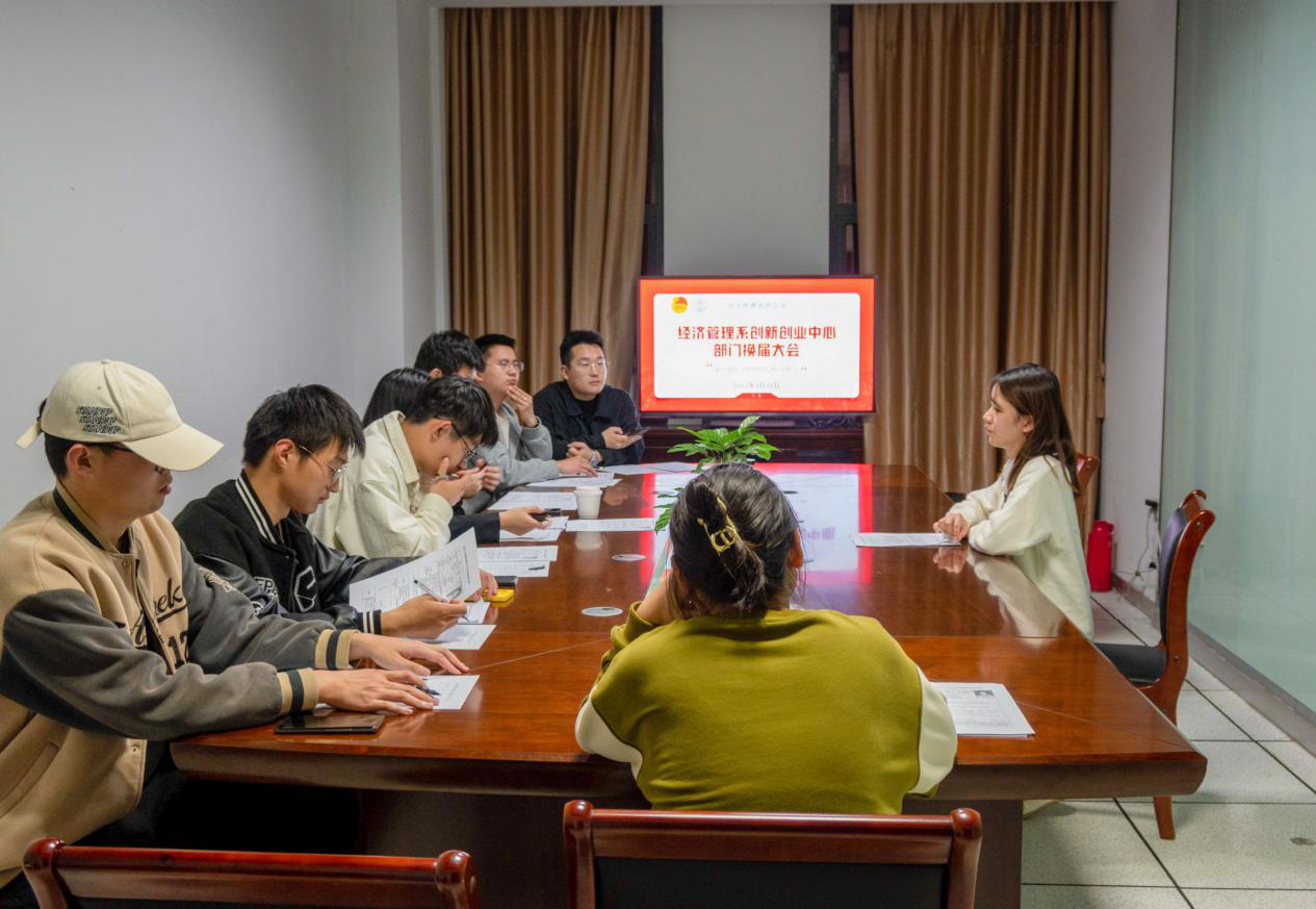 为推动经管系双创中心工作更好地开展,4月10日晚,经济管理系双创中心于怀德楼608开展换届选举大会。经管系团总支书记任潇茜和学生会主席团成员担任评委,新一届双创中心候选人参加。