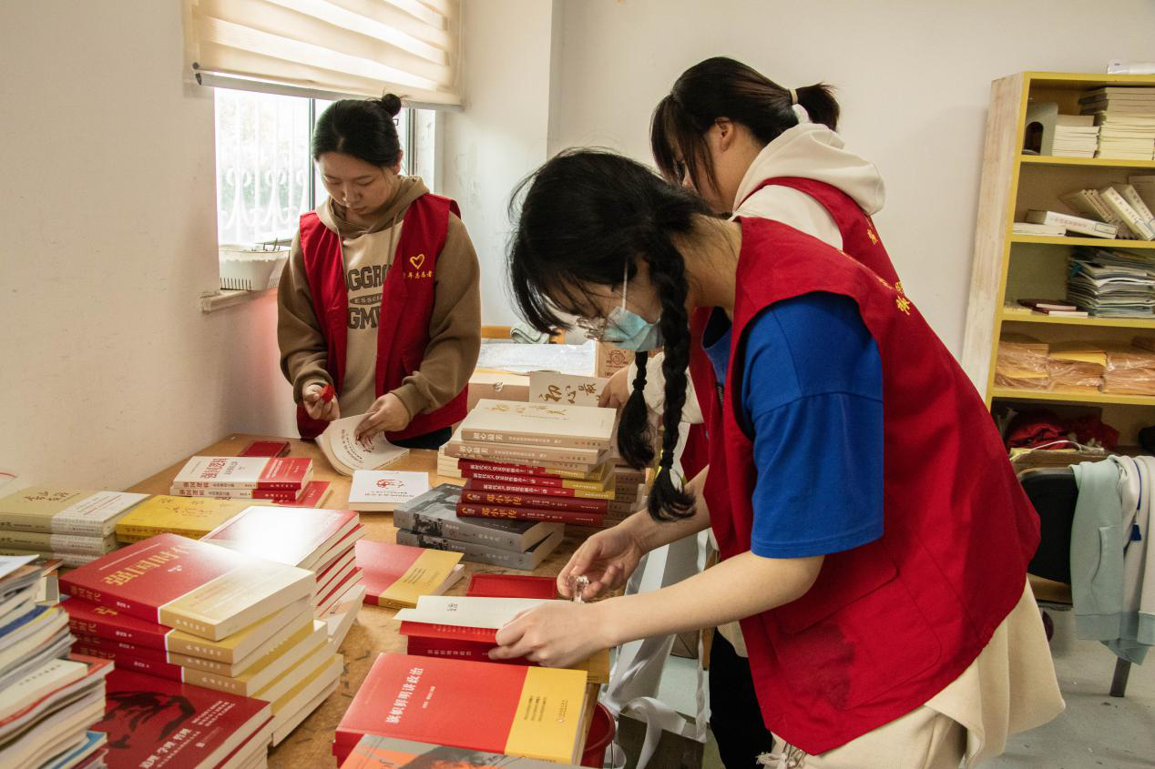 活动伊始,志愿者在图书馆前集合,图书馆管理人员向志愿者讲解了工作流程,明确了任务分配与工作要点。一部分志愿者在图书馆内负责书籍分类上架和书籍贴码盖章,他们仔细地将书本按照编号顺序依次摆放整齐,方便读者们查找借阅。一部分志愿者们来到显华书院,负责打扫地面、清理书架、书桌等工作。志愿者们热情高涨,工作认真积极,在志愿者们的通力合作下,图书室变得整洁有序、焕然一新。最后,同学们在图书馆门口进行合影留恋,活动圆满结束。