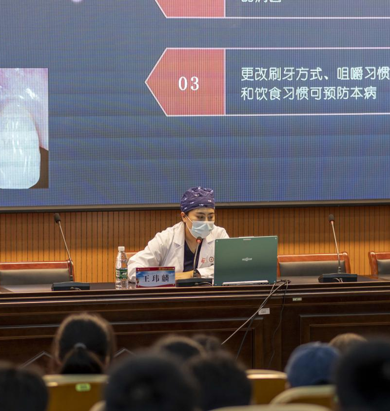 讲座详细介绍了如何保护牙齿,如何预防各类口腔疾病,并针对青年学生常见的口腔问题进行了深入地讲解。督促同学们维持正确均衡的饮食习惯,定期到医院检查,预防口腔疾病的发生。除此之外,她还讲到了正确的刷牙方式和科学维护口腔健康的方法,帮助同学们更好的保护口腔健康。讲座结束后,医生们在二食堂门口为同学们进行了口腔义诊,针对检查结果给予治疗和护理建议。