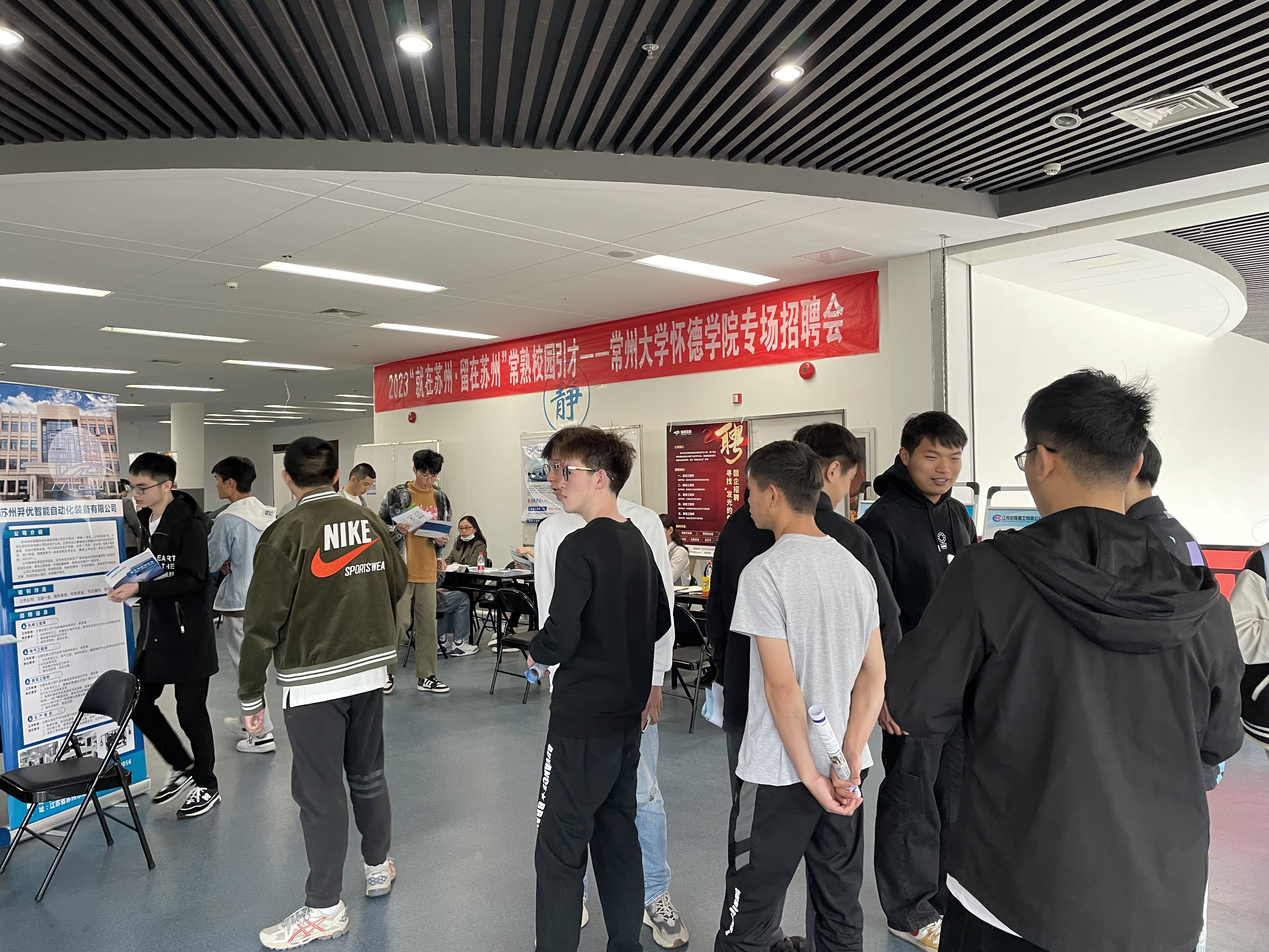 招聘会现场气氛热烈,人头攒动。参会企业热情地向同学们介绍企业情况,岗位需求,薪资待遇和发展空间等同学们较为关注的问题。同学们也主动上前与招聘企业交流沟通,投递精心准备的简历。据悉,本次招聘会历经半个多月的策划,共吸引来自上海、南京、苏州、常州等地65家企业,期中不乏有中铁二十四局集团、常州玉柴工程机械有限公司等优质国企,本次招聘会共为我院毕业生提供约680个就业岗位。