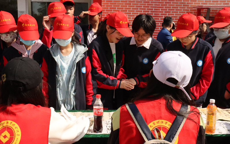 活动分为内场和外场两个区域。内场中相声表演,倡议书宣读,汉服演出等活动依次进行。台上志愿者们表演的《满腹经纶》有声有色,台下的观众热闹非凡,为温暖的四月增添了一缕书香气。室内精彩纷呈,室外热情不减。外场设置“寸草心”书香集市,通过书法字画展示,增设好物分享,开展图书义卖,延伸阅读空间,吸引了各年龄阶段的学生积极参与。志愿者们带来的书法字画更是引人驻足。