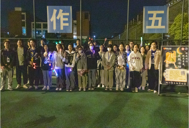 为了缓解同学们的学习压力,增强大家的身体素质,4月22日晚院心理自助中心于操场举办了“你我同行,跑荧青春”夜跑活动,七百余名学生积极参与。