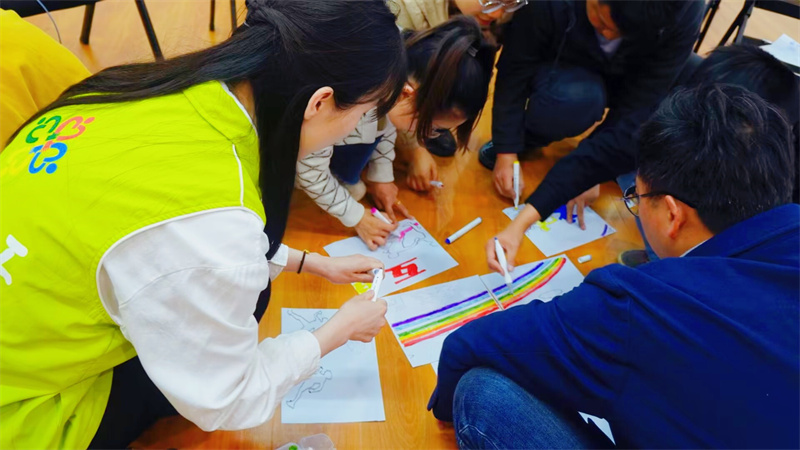 本次活动旨在通过角色分工、纳斯卡图画等形式为了更好地提升志愿者团队工作效率,提高志愿者团队管理技巧。活动期间,志愿者将我院学生进行分组,每个小组根据要求共同协作完成一个组内目标,最终再将每个小组的成果汇聚成专属于志愿团队自身的巨画,效果十分震撼,让每位同学在提升创造美的能力的同时,也认识到自身能力的局限性与团队协作的必要性。