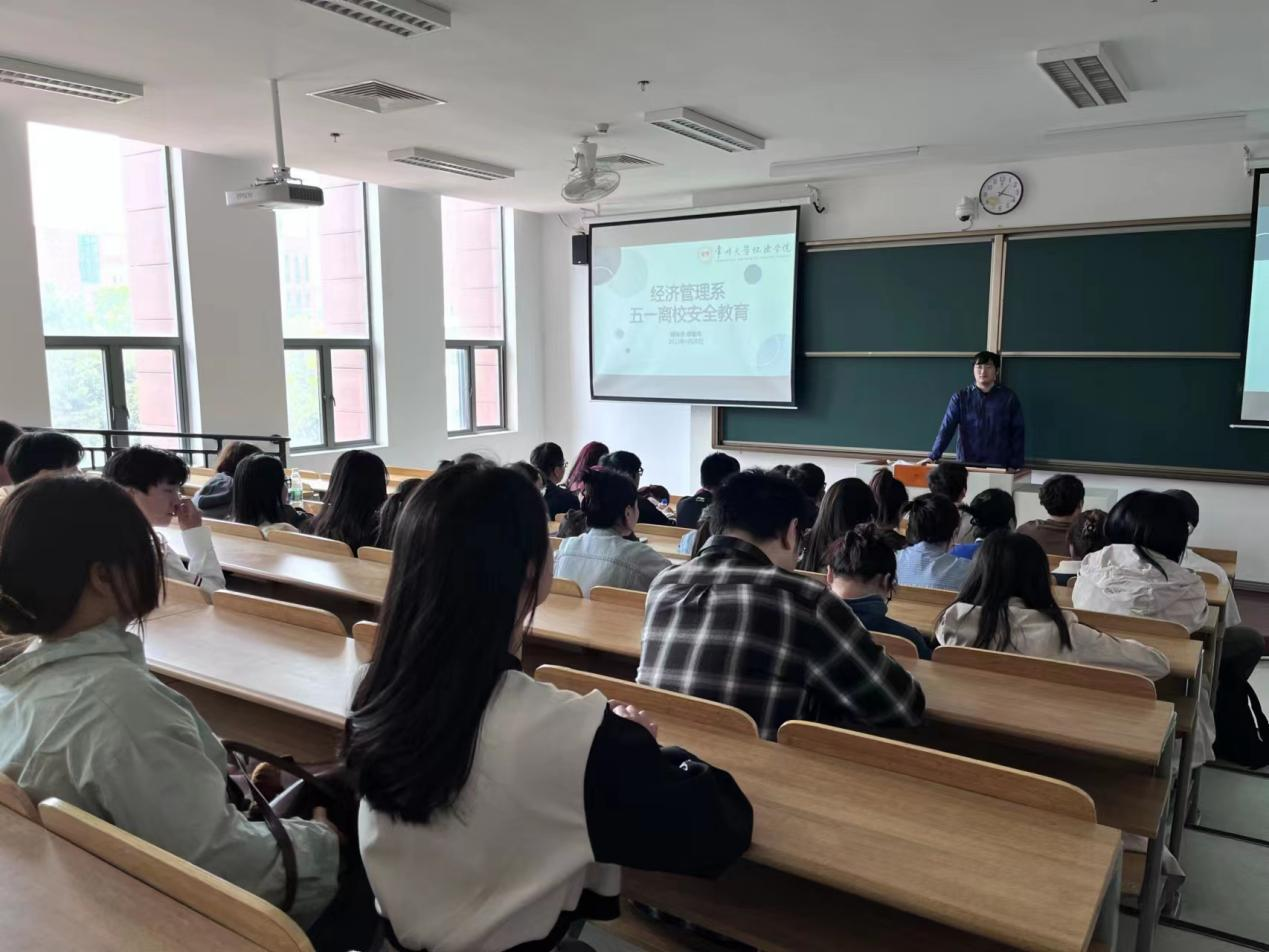 为切实做好“五一”假期的安全教育工作,严防各类安全事故的发生,引导同学们安全出行、文明出行,确保同学们度过一个安全、健康、快乐、文明的假期,五一放假前,经管系各班级于教学楼顺利召开“五一”假期安全班会,班会由各班辅导员开展,经管系全体学生参与。
