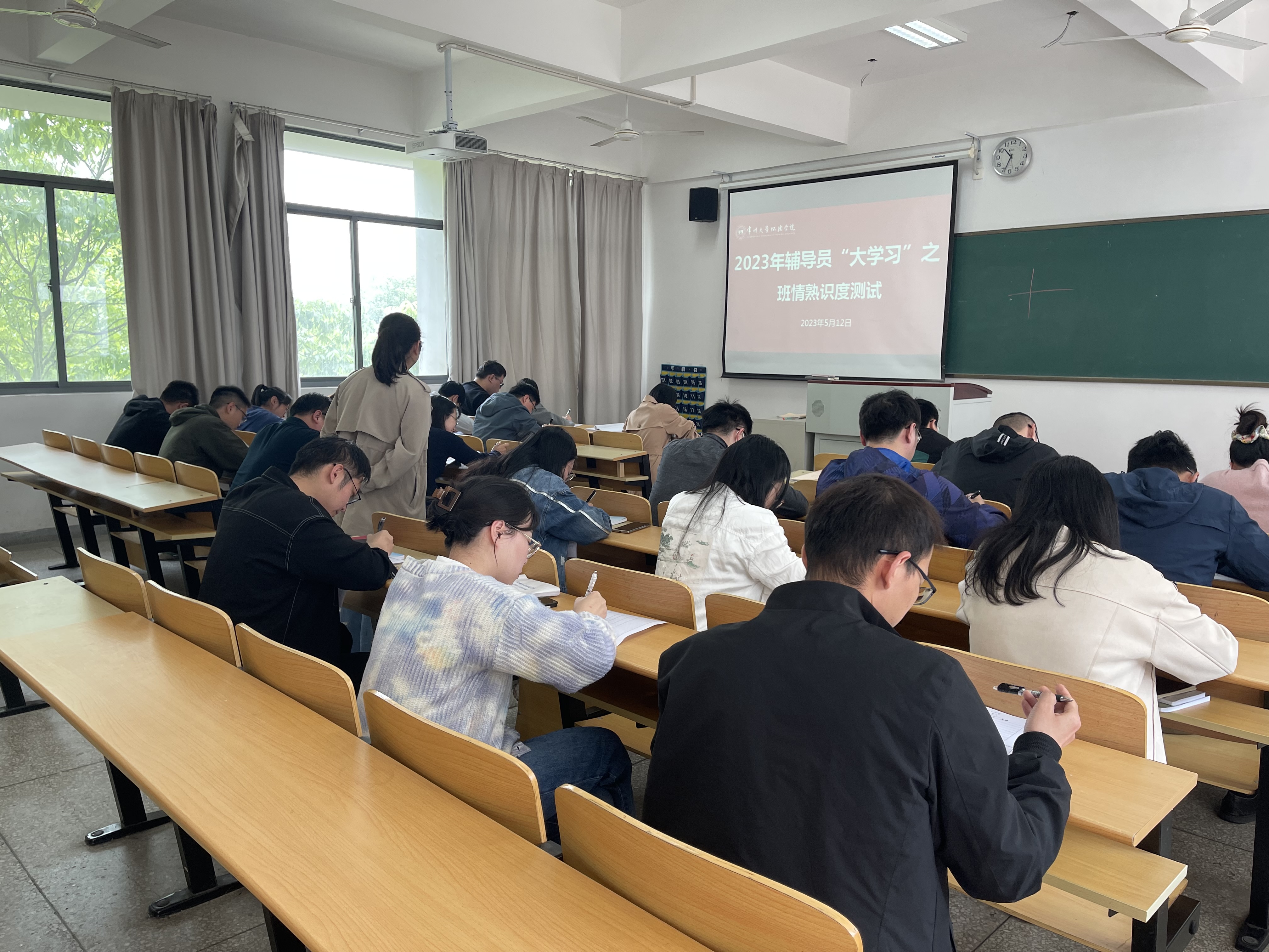为进一步积极落实学院学风建设月“辅导员听课查课制度”,督促辅导员开展学风督查工作。学生工作处于5月12日,在A203开展辅导员大学习之班情熟识度测试,各系辅导员参加测试。