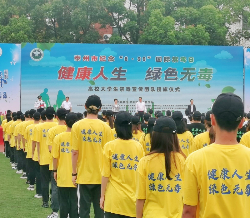 为进一步提高大学生禁毒意识,增强大学生识毒、防毒、拒毒能力,促进大学生参与禁毒,共同抵制毒品,积极营造健康的生活氛围。6月1日,院青协与大学生安全协会一同前往江苏农牧科技职业学院参加泰州市高校大学生禁毒宣传团队授旗仪式。