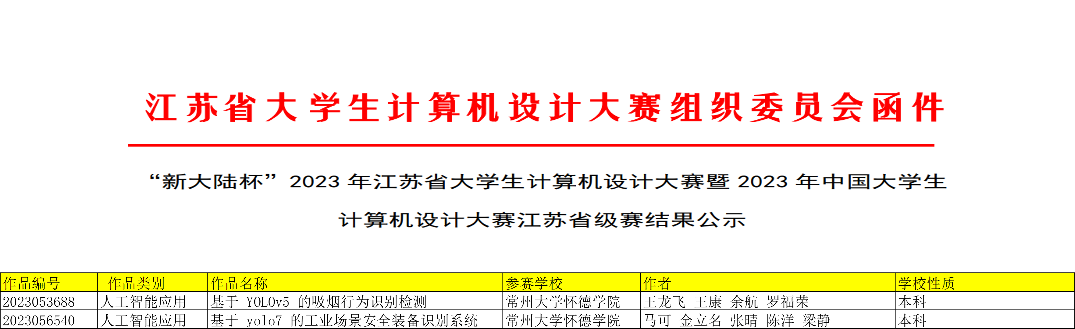 5月30日,“新大陆杯”2023年江苏省大学生计算机设计大赛暨2023年中国大学生计算机设计大赛江苏省级赛获奖名单揭晓,怀德学院两组同学脱颖而出,分别荣获二等奖、三等奖,双双上推国赛。