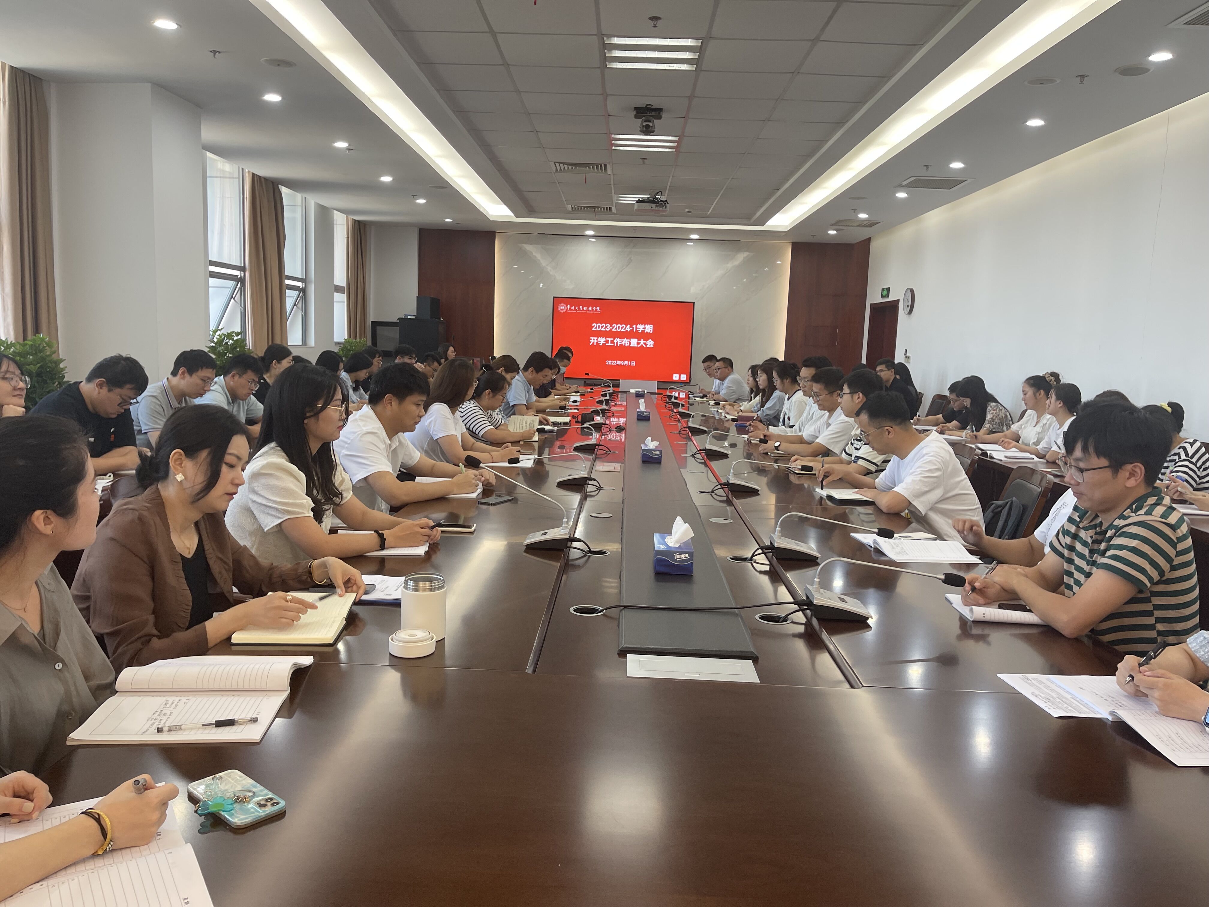 会上,范红梅对新学期老生返校、迎接新生、学工队伍建设等工作进行了整体布置。接着,各系党总支副书记及各条线负责老师对开学相关工作进行了梳理和汇报。最后刘国仕重点强调了要做好开学思政教育和日常工作以及开学第一周课堂管理、学生返校安全教育等相关工作,他指出我们要始终坚持讲政治、守纪律、强本领、敢担当,要在各项工作中严格要求,展现新的状态。