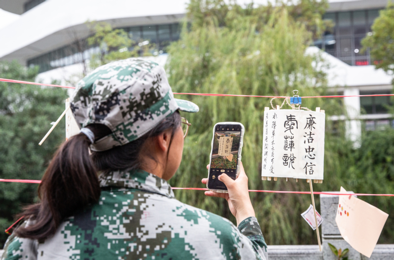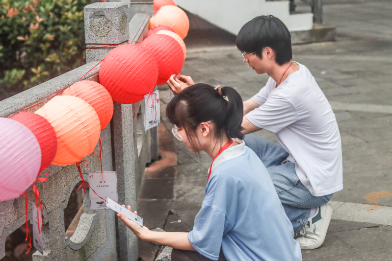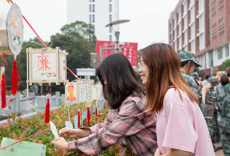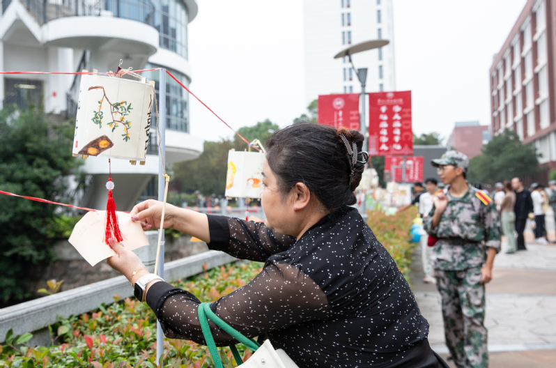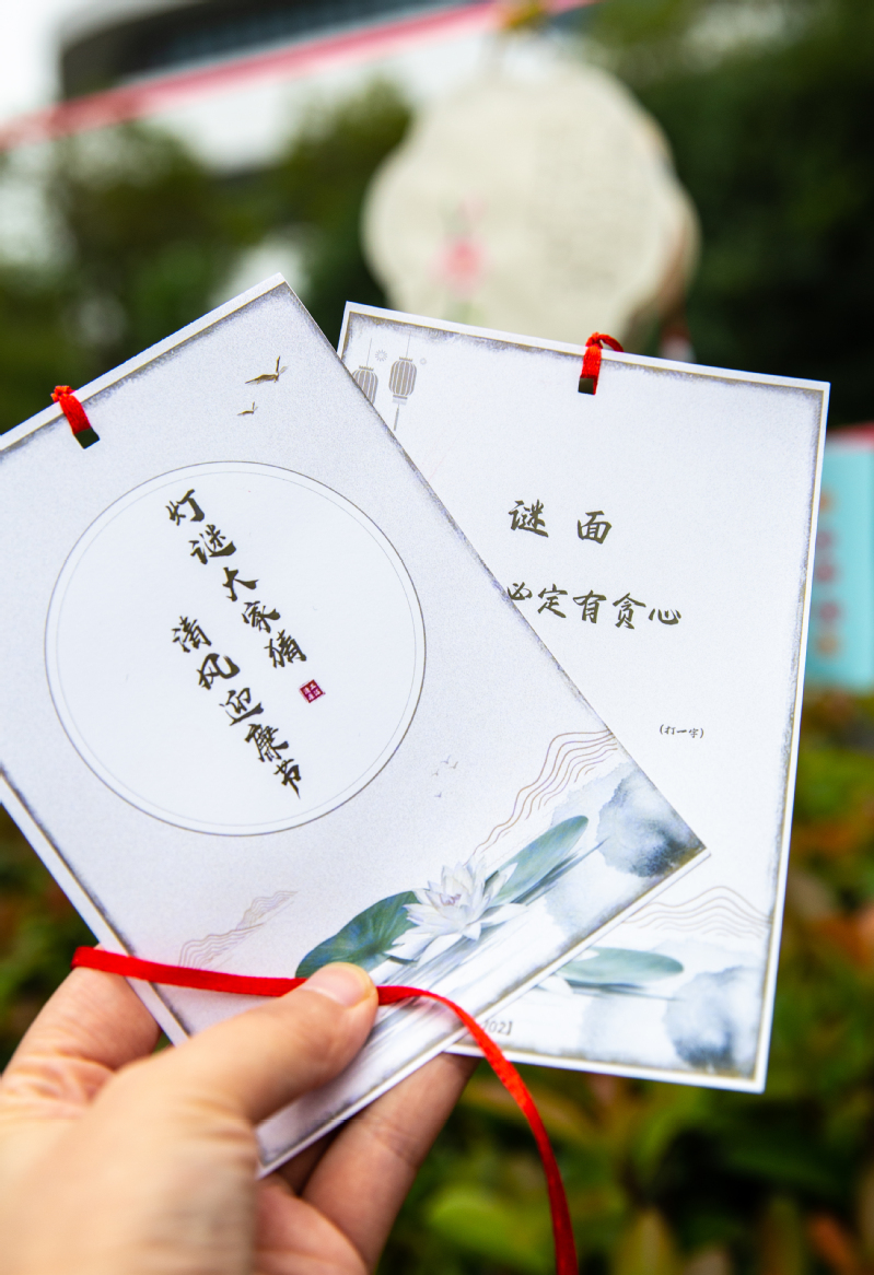 花灯展示区一旁的广场也被装扮一新,灯笼高挂、灯谜罗列,师生徜徉其中,兴致勃勃地讨论着灯谜,灯谜内容紧扣廉政主题和时事热点,涵盖党风廉政、党纪条规、法律法规等,现场不时爆发出一阵喝彩声和欢笑声,将活动的气氛推向高潮。(通讯员/涂隽可 审核/穆岚)