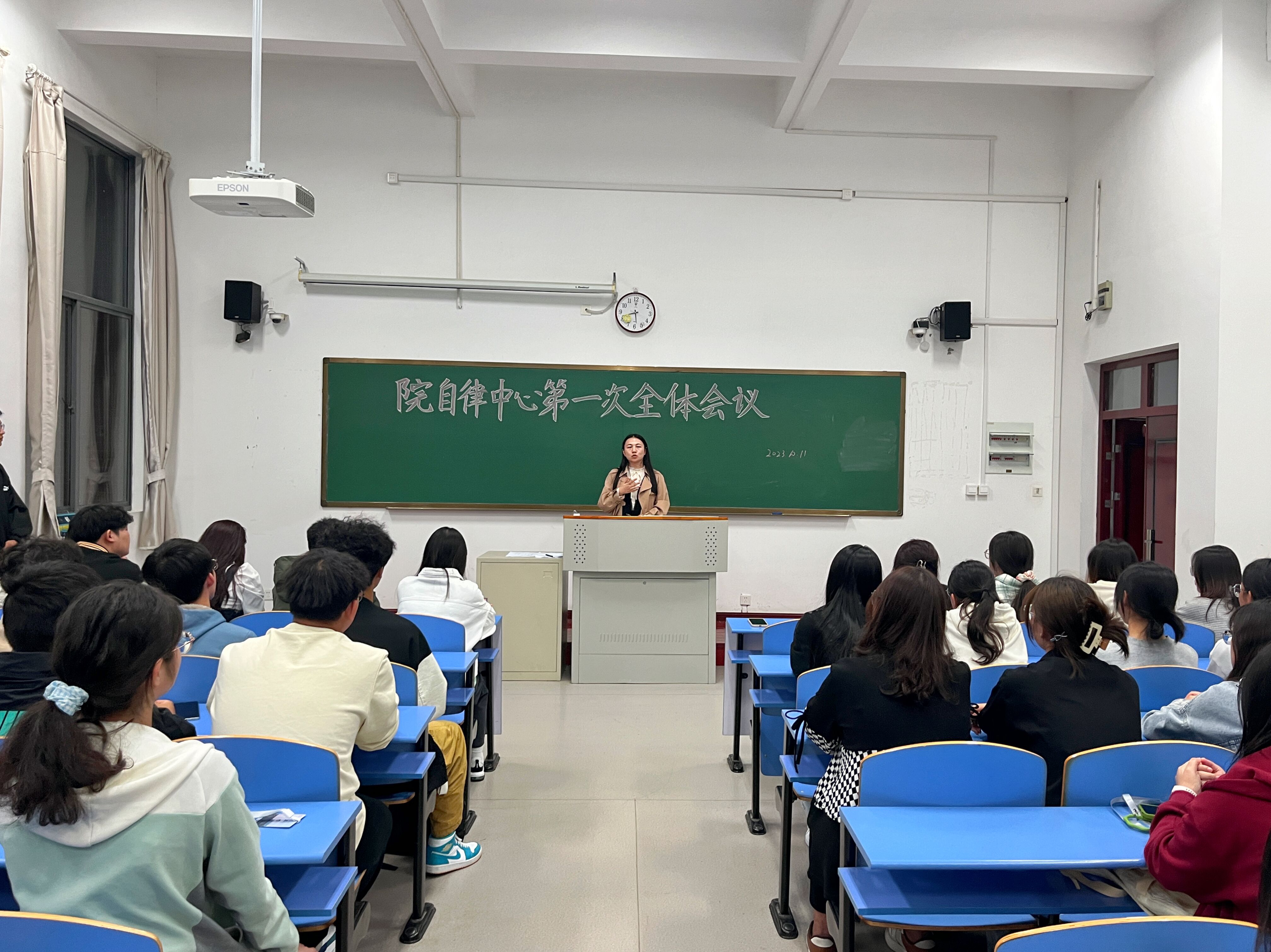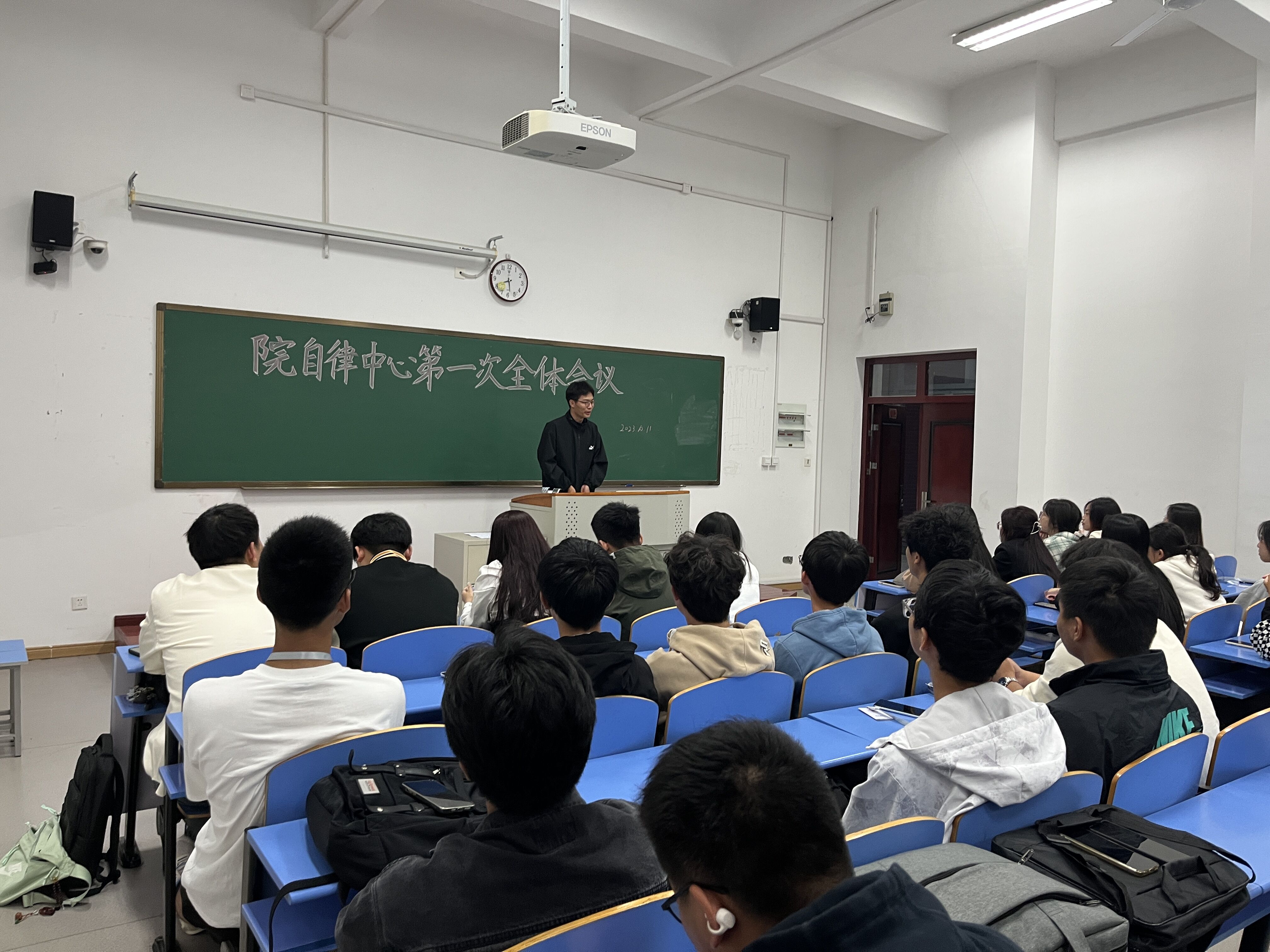 为推进我院自律中心工作有序开展,更好地为全院学生服务,同时让新成员更快地融入。10月11日下午,院自律中心于C112召开了第一次全体会议。本次会议由院自律中心主席吕新主持,指导老师张晓燕、主席团、部长团及全体干事参加了会议。