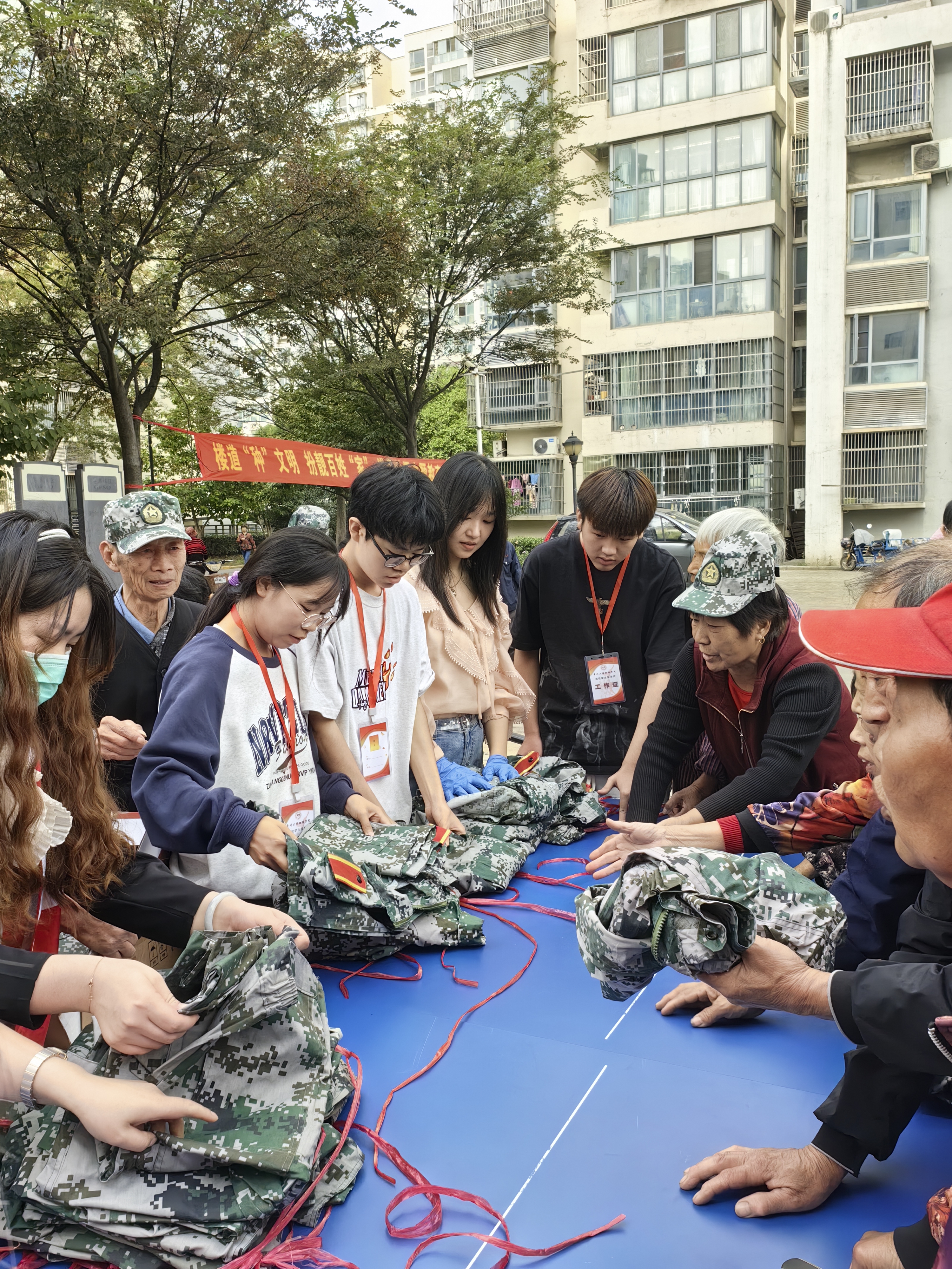 活动一经发起,全院学生积极响应号召前来捐赠,现场秩序井然,工作人员分工明确,对捐赠的衣物进行登记、归类、打包,确保每一套军训服都得到妥善处理。校内捐赠结束后,衣物转交至港阜社区居委会进行分发,将温暖送到有需要的人手中。