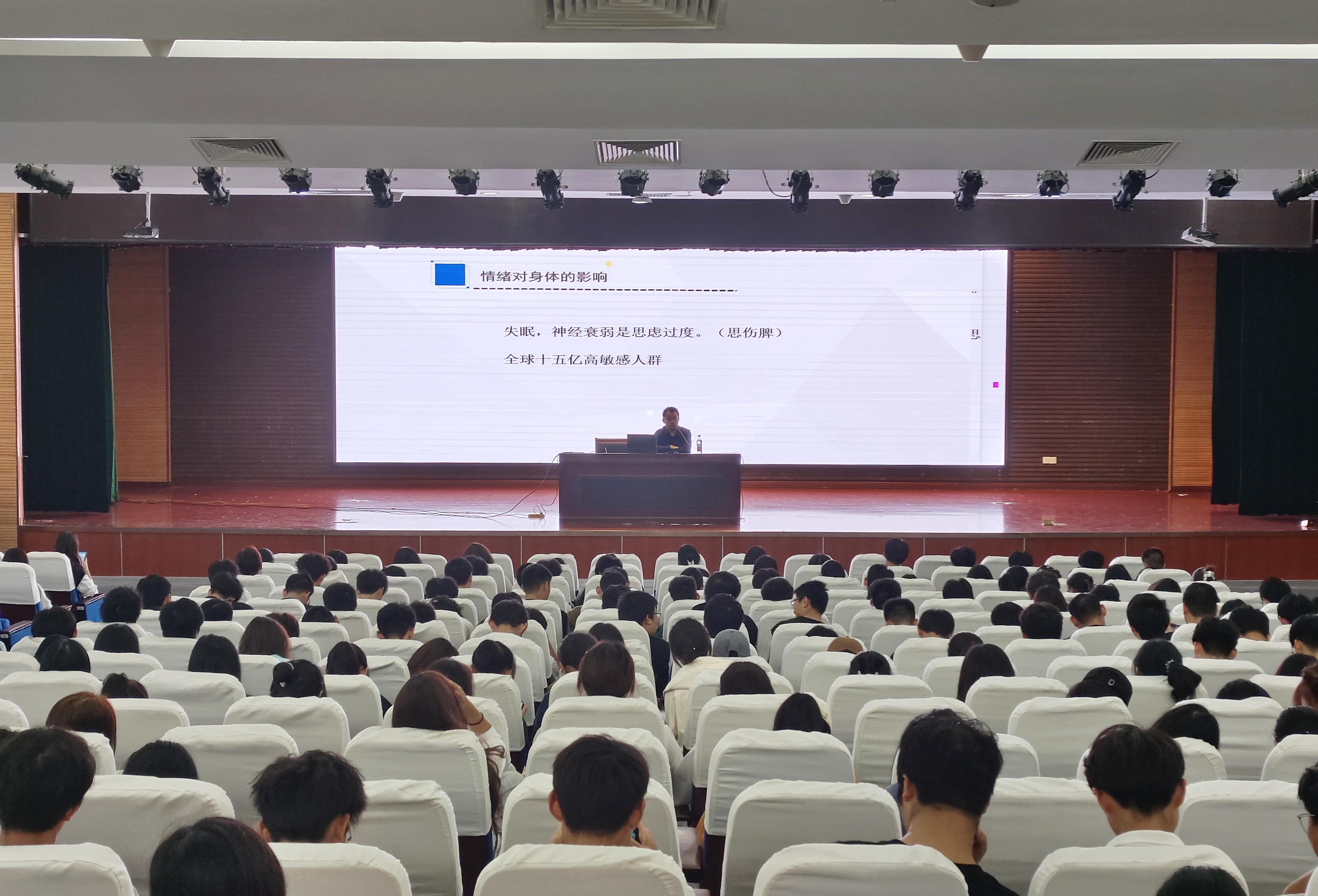 为帮助同学们正确认识并管理自己的压力与情绪,10月31日下午,院心理自助中心于怀德楼报告厅举行了“压力与情绪管理”心理讲座,全体在校生积极参加。