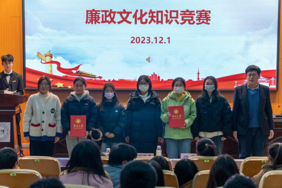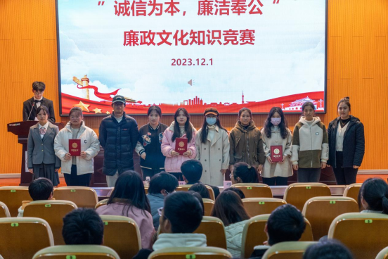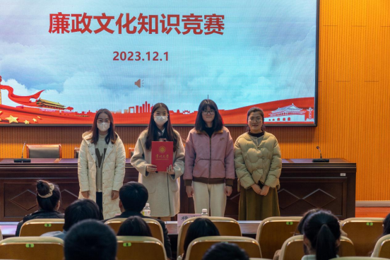 比赛共分为两轮,第一轮有必答题和选答题两种题型。比赛中,参赛选手们沉着冷静、配合默契,在第一轮各环节中均表现出色。最终,分数排名前七名的队伍进入决赛;第二轮比赛有必答题和抢答题两种题型,进入决赛的队伍都紧扣竞赛主题,凭借自己的知识储备和敏捷思维,以准确简洁的语言和专注热情的态度,积极回答各类题目。无论是必答题、选答题还是抢答题,同学们都展现出扎实的廉政知识基础和灵活的应变能力。最后,根据各支队伍总得分,评选出一等奖一支队伍,二等奖两支队伍,三等奖三支队伍,优胜奖七支队伍。比赛结束后,选手们纷纷表示,将以实际行动践行廉政价值观。他们的决心和行动展示了新时代青年学子的高尚品质和责任担当。