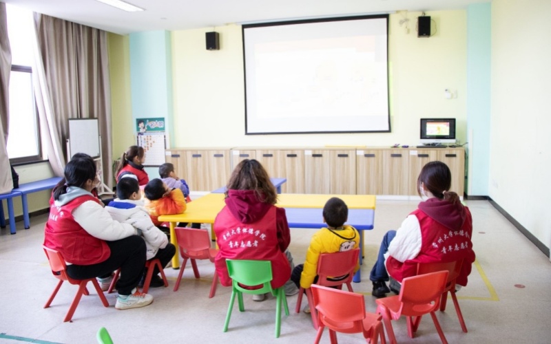 活动开始前,儿童康复中心的老师介绍了孩子们的状况,并告知注意事项。随后带领12名志愿者分组前往不同的教室,志愿者陪同孩子们观看动画片,并在此过程悉心照看。儿童康复中心的工作人员表示这些孩子们需要更多的社会关注与支持,我院志愿者的到来不仅为孩子们带来了关爱与陪伴,更向他们提供了一个与外界接触的机会。