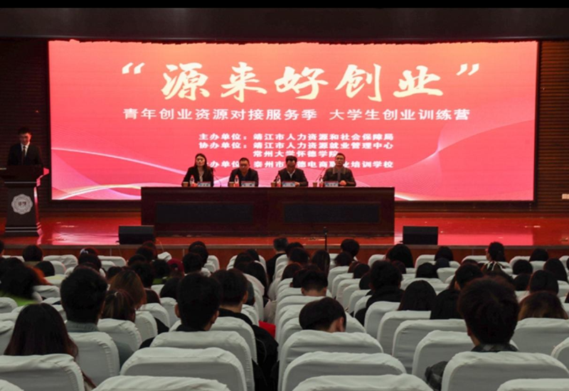 江苏歌德创业服务有限公司副总裁钱小平首先强调了提升学生创业技能和综合能力的重要性。随后,由院团委书记谷灵莉致词,鼓励学生参加创业并对参与学生提出建议。靖江市人力资源管理中心主任张鹏发表讲话,对学生将来的发展提出“三点希望“,介绍创业的有利条件与靖江经济扶持政策。最后,王伟导师进行创业讲座,指出学生要根据自身发展情况选择适合自己的赛道,并对实践项目和案例进行分析,帮助学生了解创业过程,掌握创业的技巧和策略。