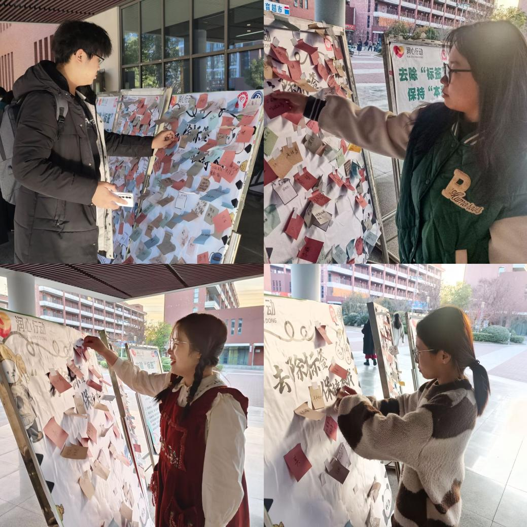 为鼓励同学们乐观自信,勇敢做自己。12月8日,院心理自助中心于二食堂门口举办了“去除‘标签’,保持‘本我’”心理巡展活动,千名学生积极参与。