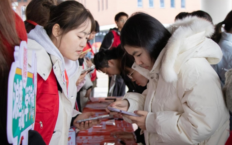 活动开始前,志愿者们在二食堂门口搭建好桌椅摆放横幅。活动过程中,学子纷纷在横幅上签下自己的名字,郑重承诺以实际行动爱粮节粮,杜绝浪费,文明就餐。同时,活动过程中还有抖音小程序节粮知识答题环节,让同学们身临其境了解节约粮食的知识及意义。随后,志愿者们将写满签名的横幅悬挂在网球场上。