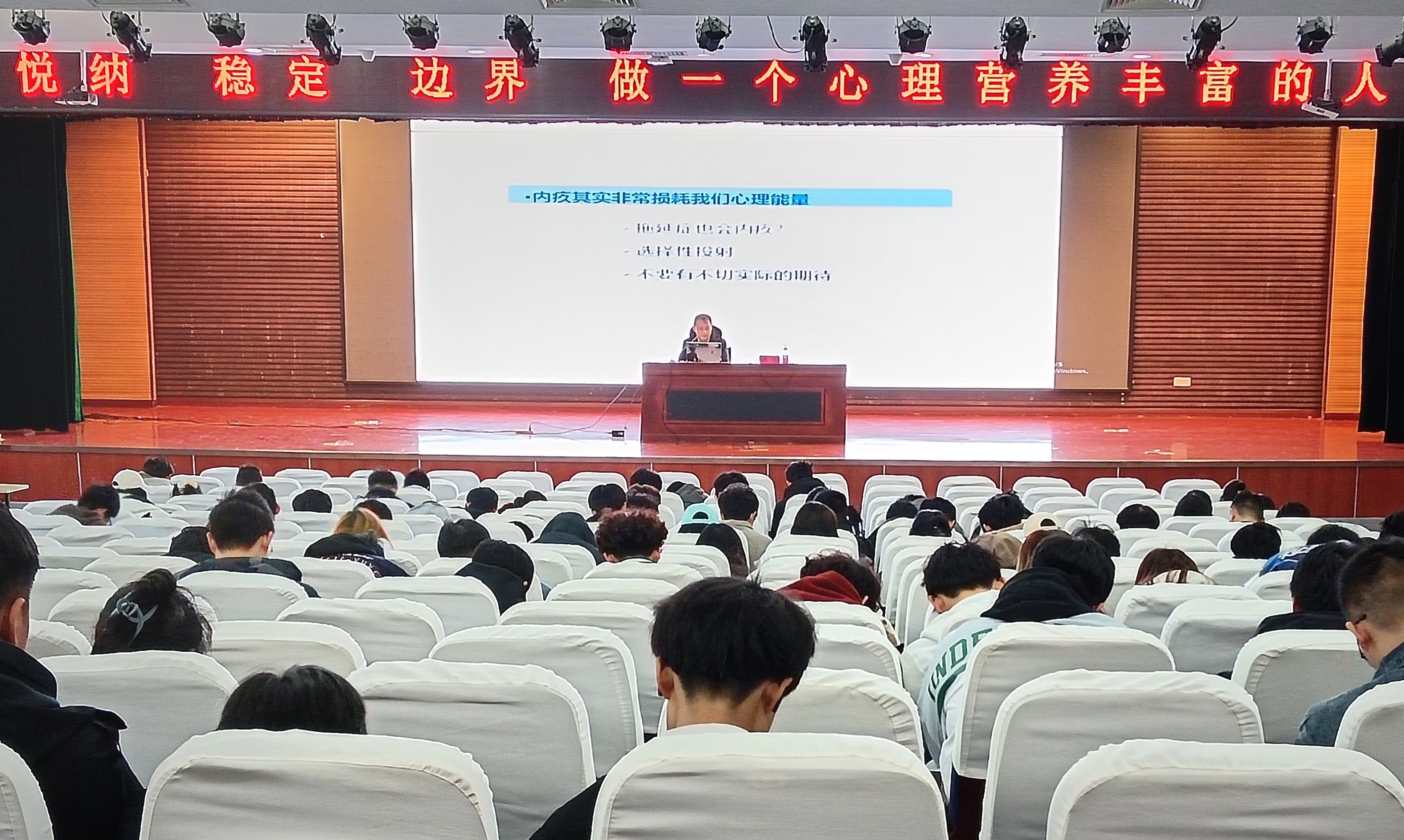 为深入贯彻《省教育厅关于组织开展“五育润心 沐光同行”心理健康教育活动的通知》精神,帮助怀德学子解决内心困惑,丰盈内心世界。3月20日下午,院心理健康教育与研究中心于怀德楼报告厅举办了“悦纳 稳定边界—做一个心理营养丰富的人”心理讲座,在校学生积极参加。