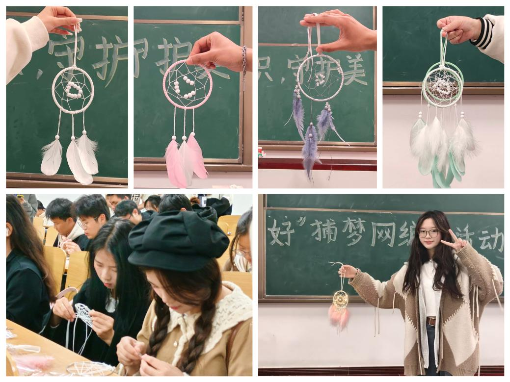 深入贯彻《省教育厅关于组织开展“五育润心 沐光同行”心理健康教育活动的通知》精神,缓解同学们内心的压力传递美好与祝福3月23日下午,院心理自助中心于B楼阶梯教室举办了“梦想交织,守护美好”——捕梦网编织活动,一百二十余名同学参