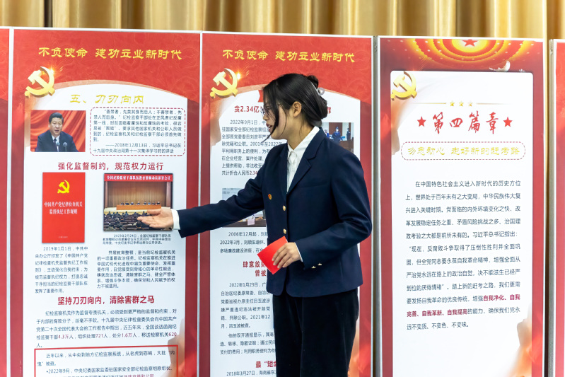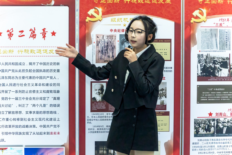 决赛现场,选手们对中国共产党自我革命专题展进行了实地讲解。结合图文并茂的展板,讲解员们用饱含感情的声音,将党的百年历史娓娓道来,让在场观众深刻感受到了中国共产党勇于自我革命、不断开拓进取的伟大精神,上演了一场视听盛宴。评委们按照评分标准,从语言表达、内容逻辑、情感传递等多个方面对选手进行综合评价,最终评选出一等奖1名,二等奖2名,三等奖3名以及优秀奖6名。