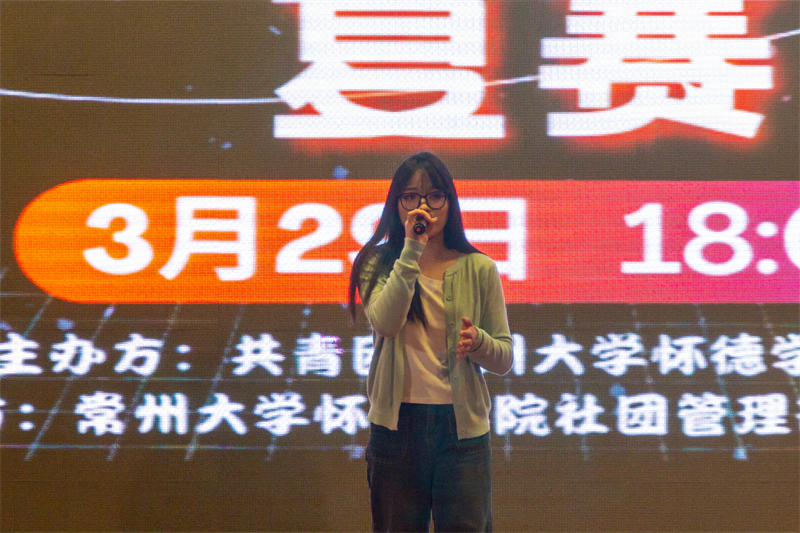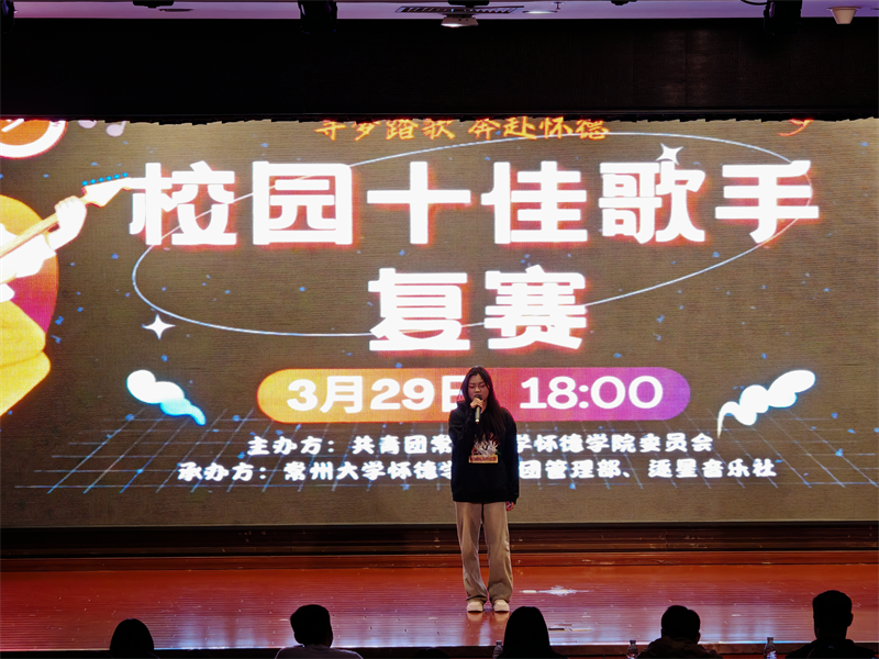 为丰富大学生校园文化生活,展现我院学生的青春活力,3月29日晚,由共青团常州大学怀德学院委员会主办,常州大学怀德学院社团管理部、逐星音乐社共同承办的“寻梦踏歌,奔赴怀德”2024年校园十佳歌手新老生赛复赛在怀德报告厅成功举办。院团委副书记徐婷、团学指导老师朱骥洪、刘小龙、王杨一可、石绍明应邀担任评委。