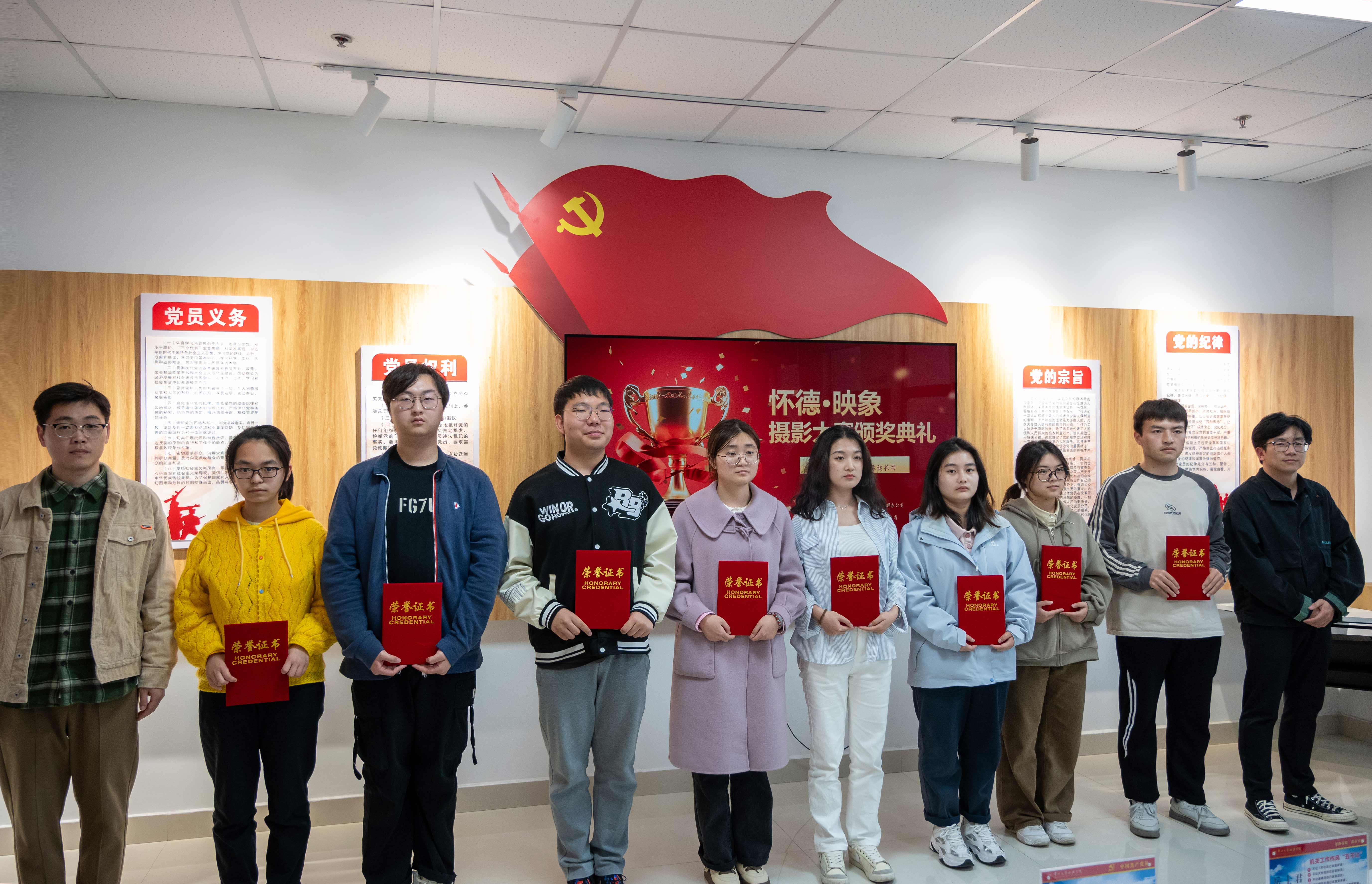为表扬先进,激发学生对校园生活的热情、展现青春活力。4月11日晚,我院在怀德楼党员活动室举行“怀德映像”摄影大赛颁奖典礼。党群办公室主任岳士君、信息系辅导员王东宇、艺术系辅导员帅博文、人事处汪丹妮、党群办公室李姗姗、党群办公室张兴刚出席了颁奖典礼。所有获奖同学参加颁奖典礼。